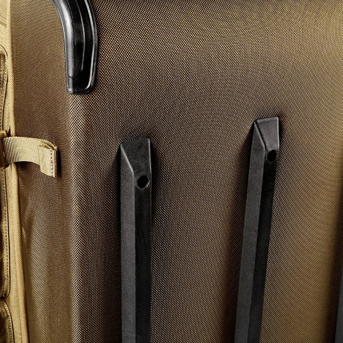 Dank zahlreicher sicherer Fächer und Taschen kann alles sicher transportiert werden, von Dokumenten über Ihre Schutzausrüstung bis hin zu Langwaffen – alles wird durch Gleitschienen zur Unterstützung und Lastverteilung sowie durch herausnehmbare Glasfaserstangen in den geformten Seitenwänden an Ort und Stelle gehalten.