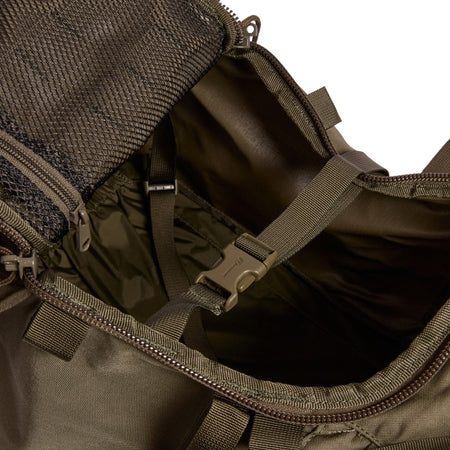 Material: 100% Polyamid 6.6 (CORDURA 560 DTEX nach BW TL 8305-0278, 3-fach PU-beschichtet); YKK®-Reißverschlüsse; geräuscharme Duraflex® Schnallen.