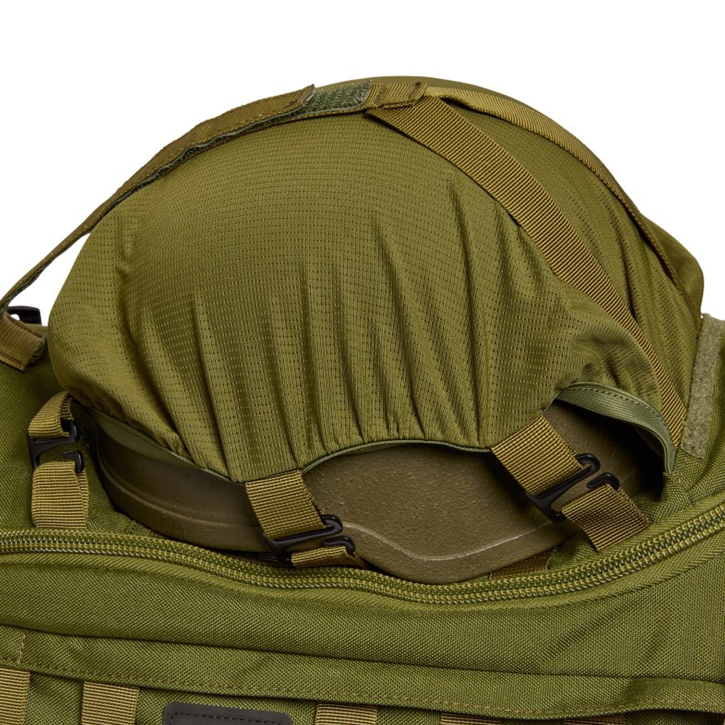 Für die Befestigung zusätzlicher Ausrüstung und Taschen befinden sich innen und außen diverse Befestigungsmöglichkeiten, wie z.B. MOLLE-, MMPS- und FLT-kompatibler Ausrüstung. So können z.B. an den seitlichen Reißverschlüssen MMPS-Seitentaschen (separat erhältlich) befestigt werden. In einem Klettfach der FA-Abdeckung befindet sich zudem eine Netztasche zum Verstauen von Helm, Jacke etc. auf der Außenseite.