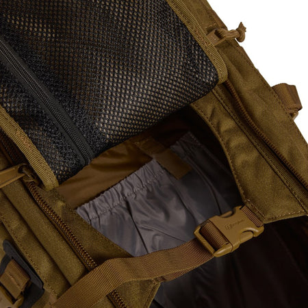 Für die Befestigung zusätzlicher Ausrüstung und Taschen befinden sich innen und außen diverse Befestigungsmöglichkeiten, wie z.B. MOLLE-, MMPS- und FLT-kompatibler Ausrüstung. So können z.B. an den seitlichen Reißverschlüssen MMPS-Seitentaschen (separat erhältlich) befestigt werden. In einem Klettfach der FA-Abdeckung befindet sich zudem eine Netztasche zum Verstauen von Helm, Jacke etc. auf der Außenseite.