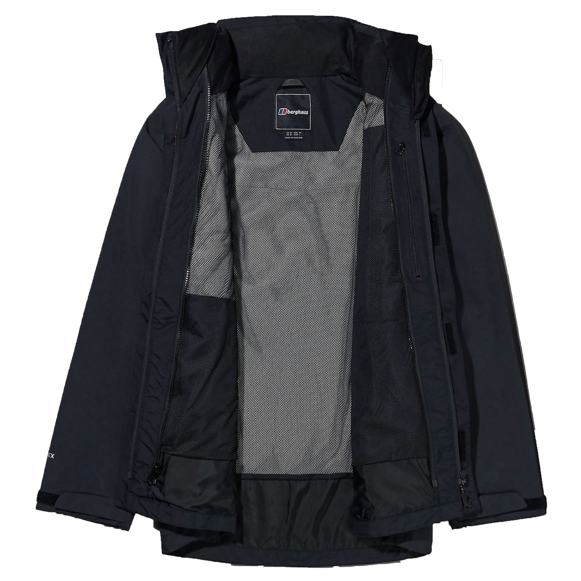 Zwei seitliche Taschen wärmen bei Bedarf die Hände, ein Sturmflap schützt den Reißverschluss vor Nässe und Wind. Der Schnitt der Jacke bietet genug Platz für eine wärmende Mittelschicht – die Berghaus-eigenen Produkte der InterActive-Linie lassen sich sogar einzippen (ACHTUNG: Diese befinden sich nicht im Lieferumfang!!). Die Kapuze lässt sich einfach einrollen und im Kragen verstauen. Alles in allem ist die Hillwalker IA Shell Jacke ein zuverlässiger Begleiter für alle Wetterlagen.