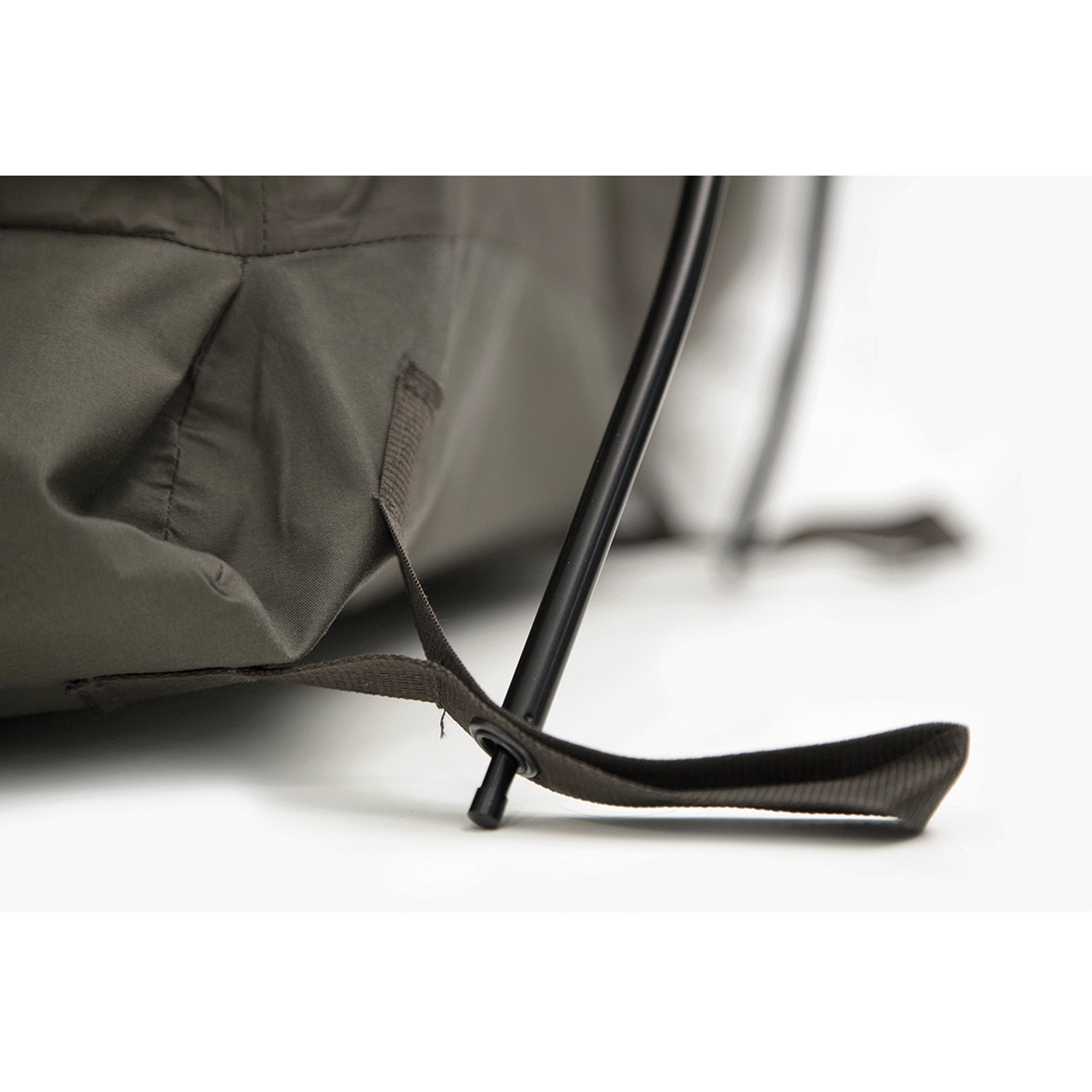 Sowohl der Beobachtungsschlitz als auch die Eingangsöffnung sind mit einem Moskitonetz ausgestattet. Durch fünf integrierte Schlaufen auf der Rückseite kann die Isoliermatte fixiert werden.