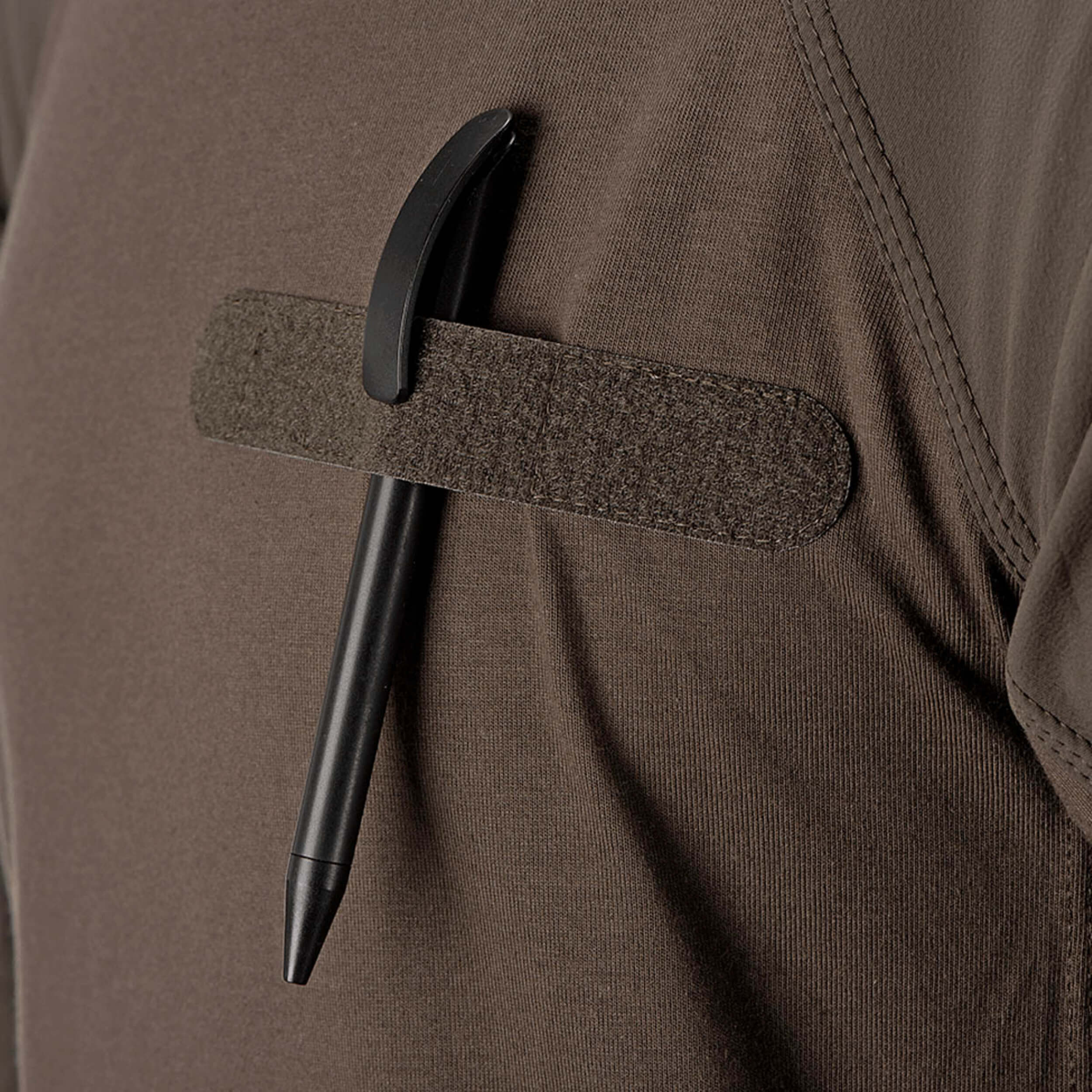 Die technische Schnittführung der Ärmel aus sehr widerstandsfähigen, stretchigem und wasserabweisenden Material sorgt für eine extrem hohe Bewegungsfreiheit. Die beiden Oberarmtaschen sorgen für ausreichend Stauraum, wärhend die Flauschflächen Platz für ID-Abzeichen und je zwei Einschubfächer für Schreibzeug bieten.