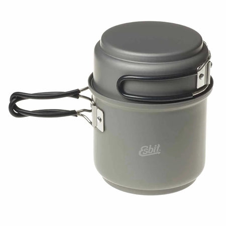 Mit diesem 1-2 Personen Camping Spiritus Kocher von Esbit bist du kompakt und gleichzeitig vielseitig unterwegs, denn den Deckel des größeren Camping Topfes (985 ml) kannst du auch als zweiten, kleineren Topf (470 ml) nutzen.