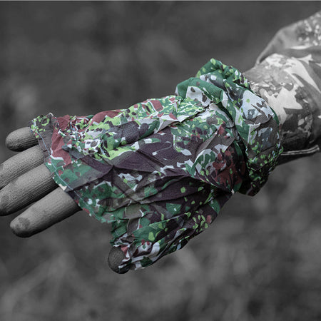 Der GHOSTHOOD® Ghost-Hands Hand-Camo ist ein ultraleichter Tarnüberzug für die Hände, welcher mit sowie ohne Handschuhe genutzt werden und über gängige Uhrenmodelle passt.