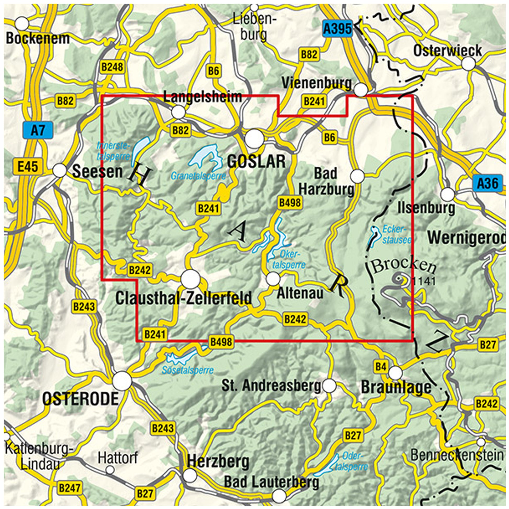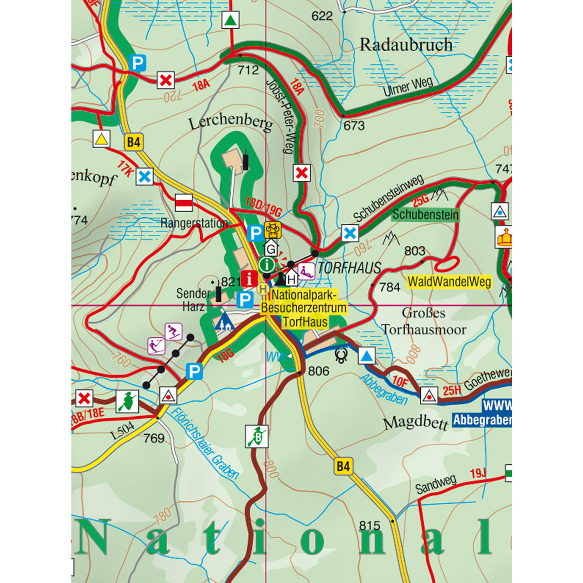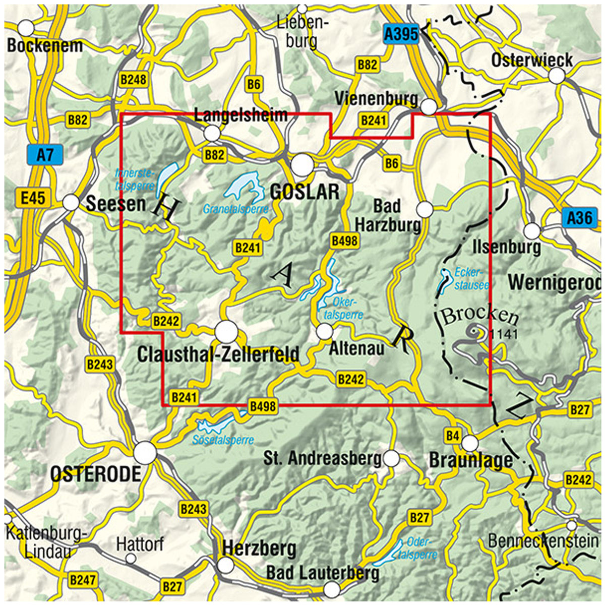 Die reiß- und wetterfeste Rad- und Wanderkarte "Goslar - Bad Harzburg " stellt im Maßstab 1: 33.000 die Wanderregion von Goslar über Altenau und das Torfhaus bis nach Clausthal-Zellerfeld und Bad Grund mit dem vollständigen Rad- und Wanderwegenetz vor. Sie schließt damit an die Wanderregion Osterode - Herzberg an und ermöglicht den Übergang nach Braunlage und Sankt Andreasberg.