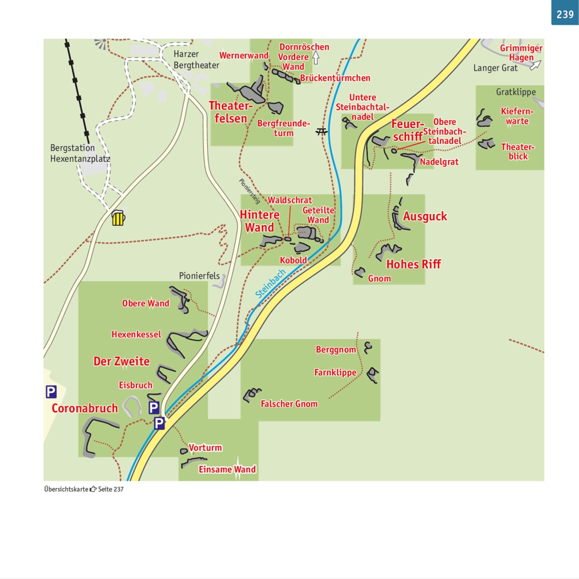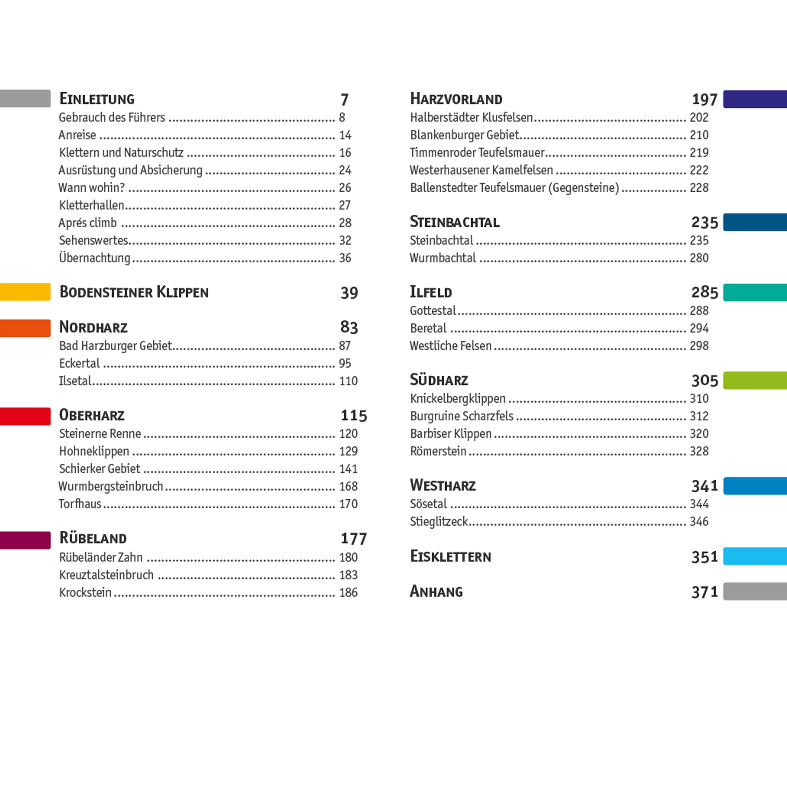 Farbige Fototopos, viele Übersichts- und Detailkarten, üppigst bebildert mit Kletter- und Stimmungsbildern sowie Zusatzinformationen zu den wichtigsten Akteuren der Kletterszene und den erstaunlichen Sehenswürdigkeiten des nördlichsten deutschen Mittelgebirges.