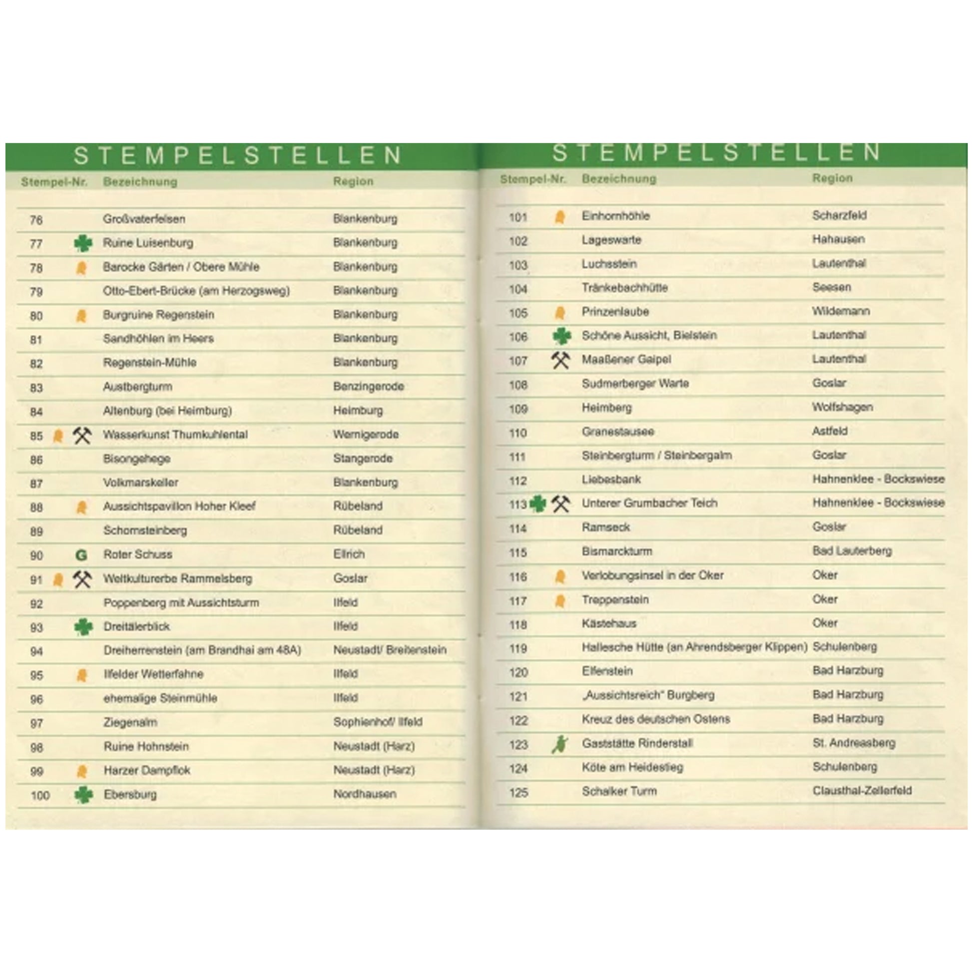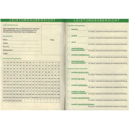 Der offizielle Wanderpass zum Wanderstempeln mit der Harzer Wandernadel. In diesem Wanderpass werden die Stempelabdrücke gesammelt, die als Nachweis für die Wanderleistung dienen und zum Erwerb der Harzer Wandernadeln berechtigen.