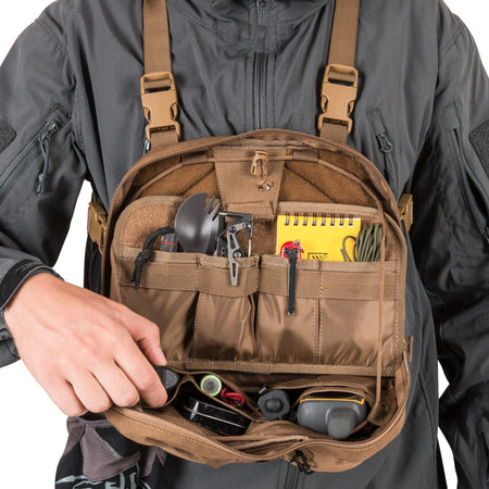 Das Numbat Chest Pack von Helikon ermöglicht es, alles Wesentliche vor der Brust tragen, während zahlreiche Außen- und Innentaschen helfen, alles zu organisieren. Zusätzlich ist eine der Innenwände mit weichem Velours bezogen, der mit VIS-Einsätzen kompatibel ist. Ein interner, herausnehmbarer Organizer mit transparentem Kartenfach erleichtert die Navigation. Die Begrenzer aus strapazierfähiger Kordel ermöglichen einen Öffnungswinkel von bis zu 90 Grad. Das minimalistische und dennoch bequeme Design des Gurtzeugs stört nicht bei der Verwendung von Rucksack-Schultergurten aller Art. Externe Befestigungspunkte, die mit MOLLE/PALS kompatibel sind, geben die Möglichkeit, das Chest Pack nach Ihren Bedürfnissen zu erweitern.
