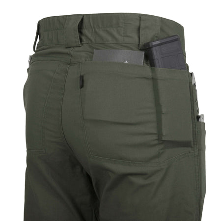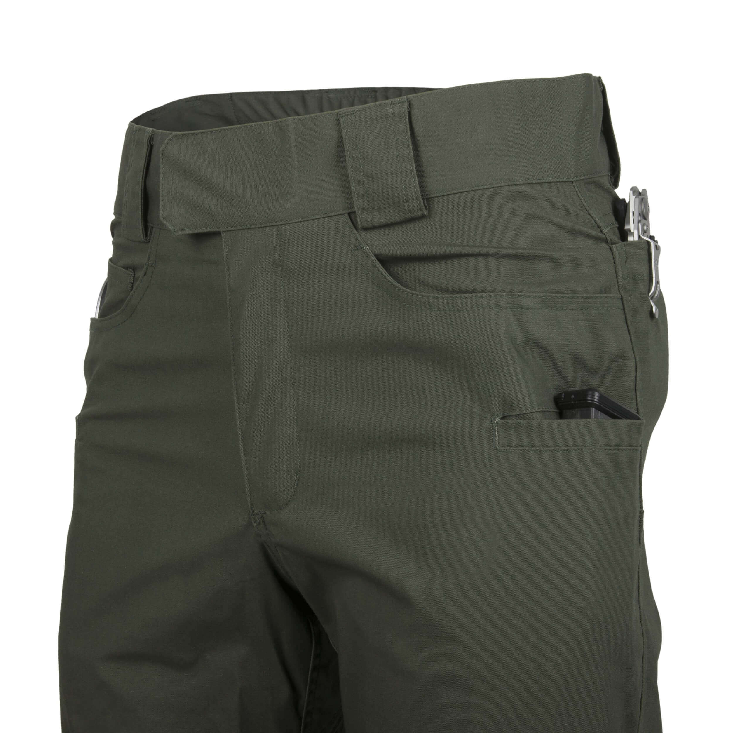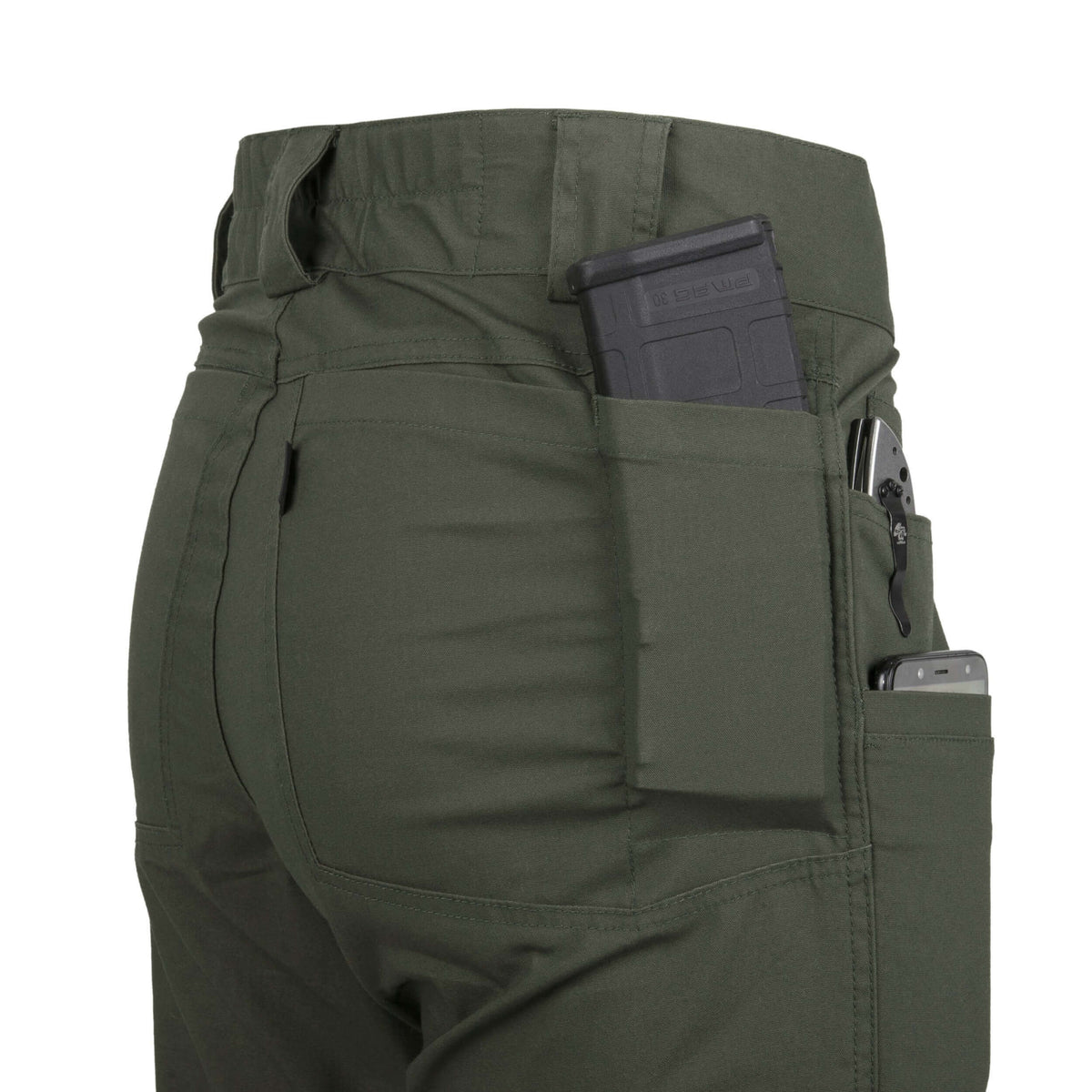 Die Greyman Taktische Hose® ist eine Kombination aus taktischen Eigenschaften und flachem Look. Der Schrittzwickel sorgt für Bewegungsfreiheit und höhere Haltbarkeit. Der integrierte Gürtel ist elastisch und wird durch Klettverschluss befestigt, um die Einstellung zu ermöglichen. Gürtelschlaufen würden bis zu 50 mm breite Gürtel aufnehmen. Neun Taschen: zwei klassische Haupttaschen auf der Vorderseite, zwei kleinere Vordertaschen, vier Hintertaschen und eine in der rechten Vordertasche.