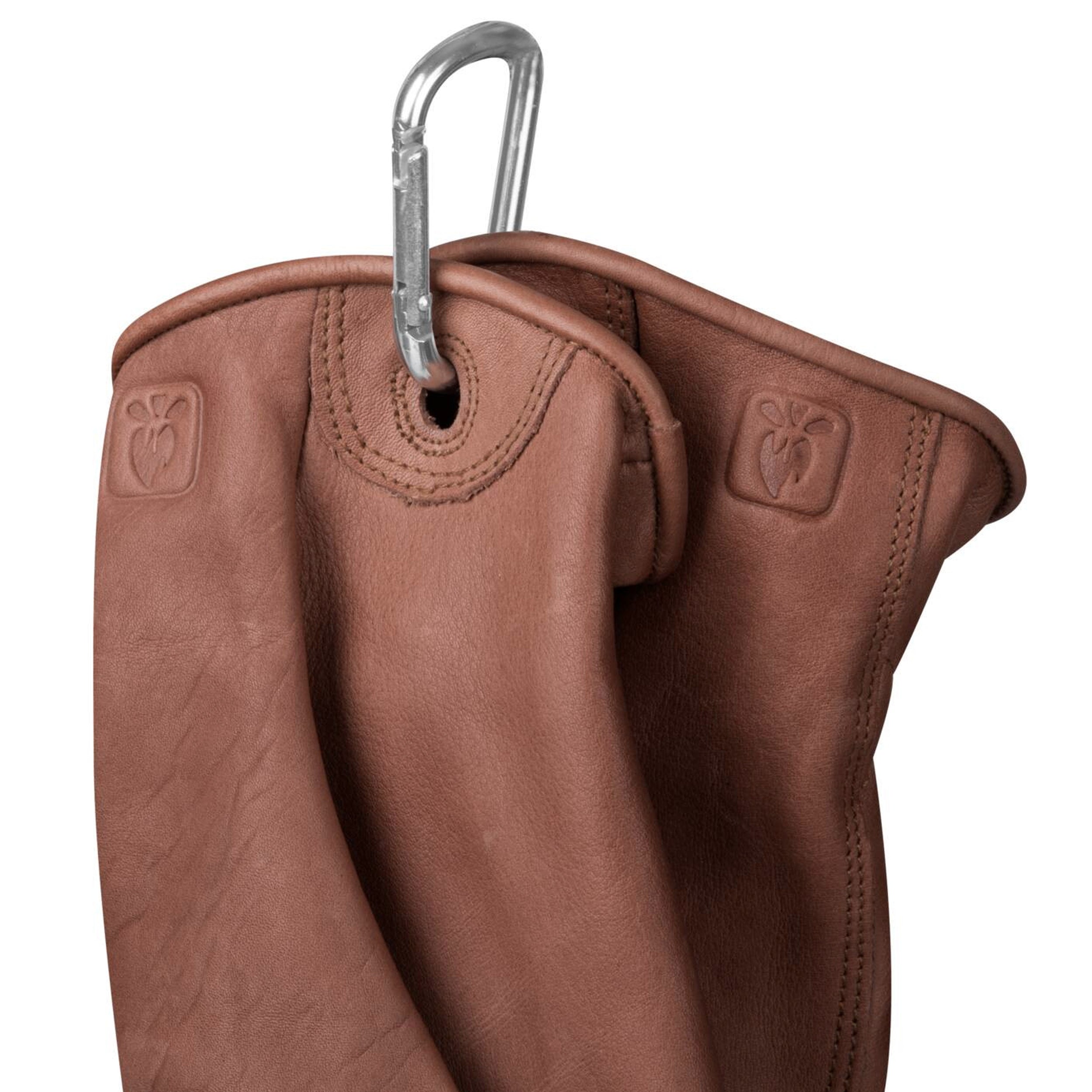 Die elastische Stulpe sorgt für einen guten Sitz und verhindert, dass unerwünschte Gegenstände in die Handschuhe gelangen. Die verstärkte Stulpe mit Loch und einfachem Karabiner ermöglicht es, die Handschuhe mit dem mitgelieferten Karabiner am Gürtel oder Rucksack zu befestigen.