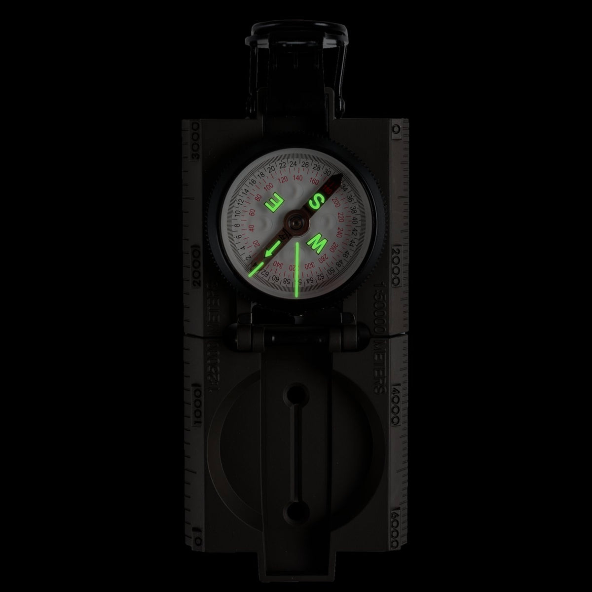 Um ihn noch zuverlässiger zu machen, besonders bei Nachtaktivitäten, ist der Kompass mit phosphoreszierenden Teilen ausgestattet.