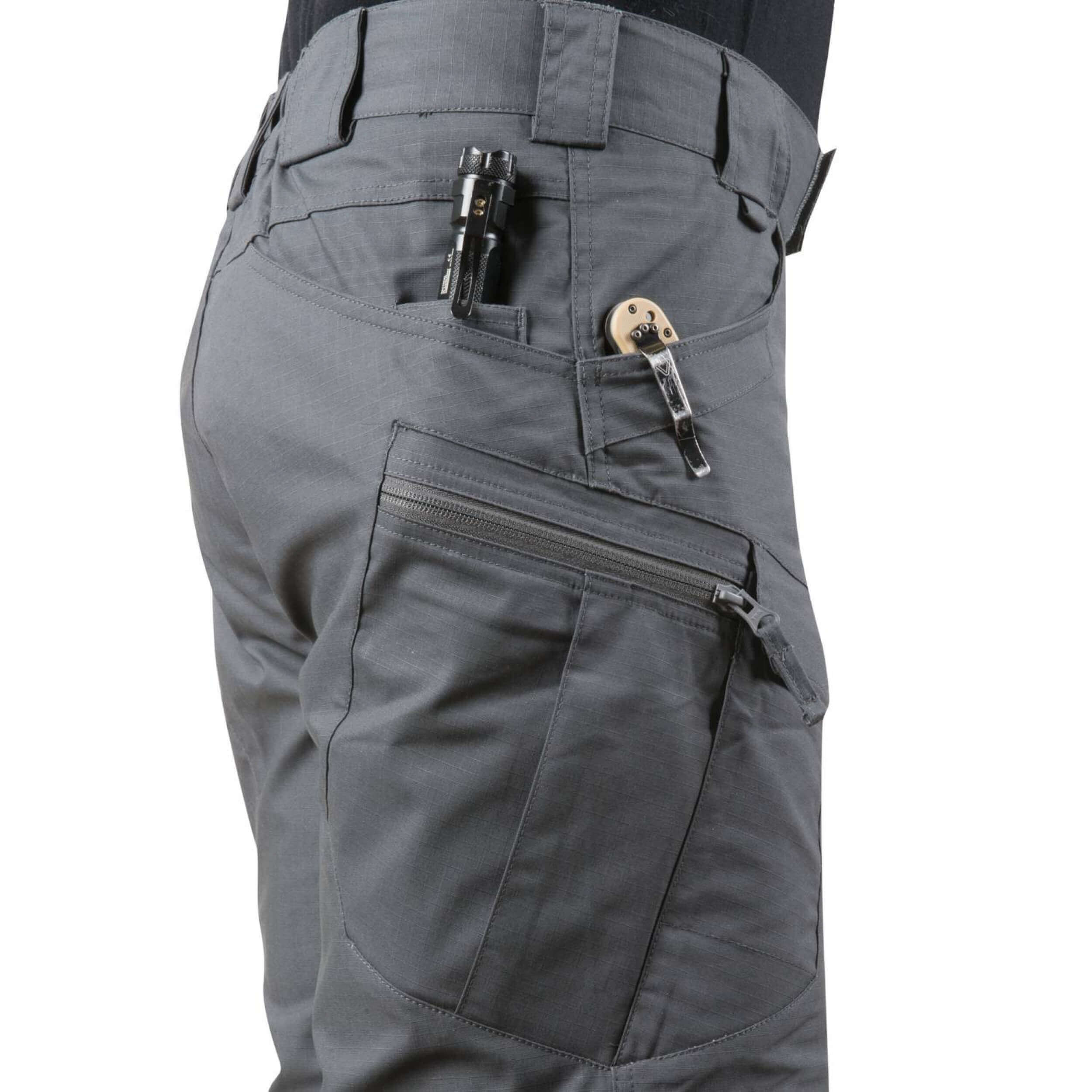 Durch eine geschickte Anordnung der Taschen kann die Ausrüstung in der Nähe der Körpermitte, um die Hüften und die Taille herum, untergebracht werden. Die Kanten der vorderen und hinteren Taschen sind verstärkt, um der ständigen Bewegung von Taschenlampen- und Messerclips standzuhalten. Zwei mit Klettverschluss verschließbare Vordertaschen sind groß genug, um ein Smartphone oder sogar ein AR/AK-Gewehrmagazin zu tragen. Die Reißverschlusstaschen an den Oberschenkeln sehen zwar flach aus, sind aber so konzipiert, dass Taschen oder Portemonnaies problemlos mitgeführt werden können.