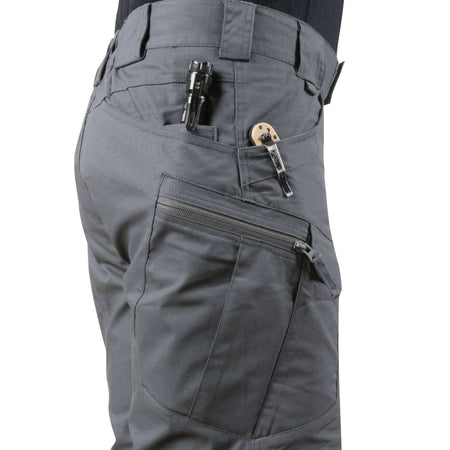 Die Helikon UTS (Urban Tactical Shorts) hat einen zivilen Schnitt und eine Vielzahl von praktischen Taschen. Der elastische Gürtel mit Klettverschluss ermöglicht ein gewisses Maß an Anpassung innerhalb der Größe. Große Gürtelschlaufen ermöglichen das Tragen von breiten Gürteln.