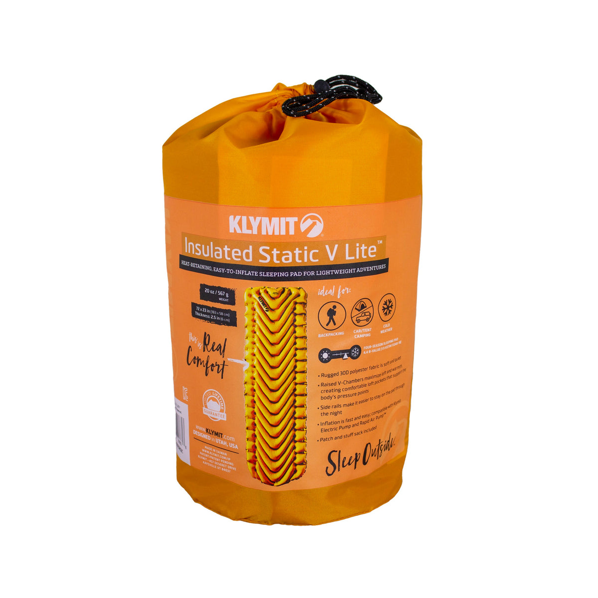Die Insulated Static V Lite von Klymit ist leicht genug, um auf die meisten ultraleichten Abenteuer mitgenommen zu werden und bietet dank der Klymalite-Isolierung eine hohe Wärmeleistung und ist dennoch äußerst klein im Packmaß.