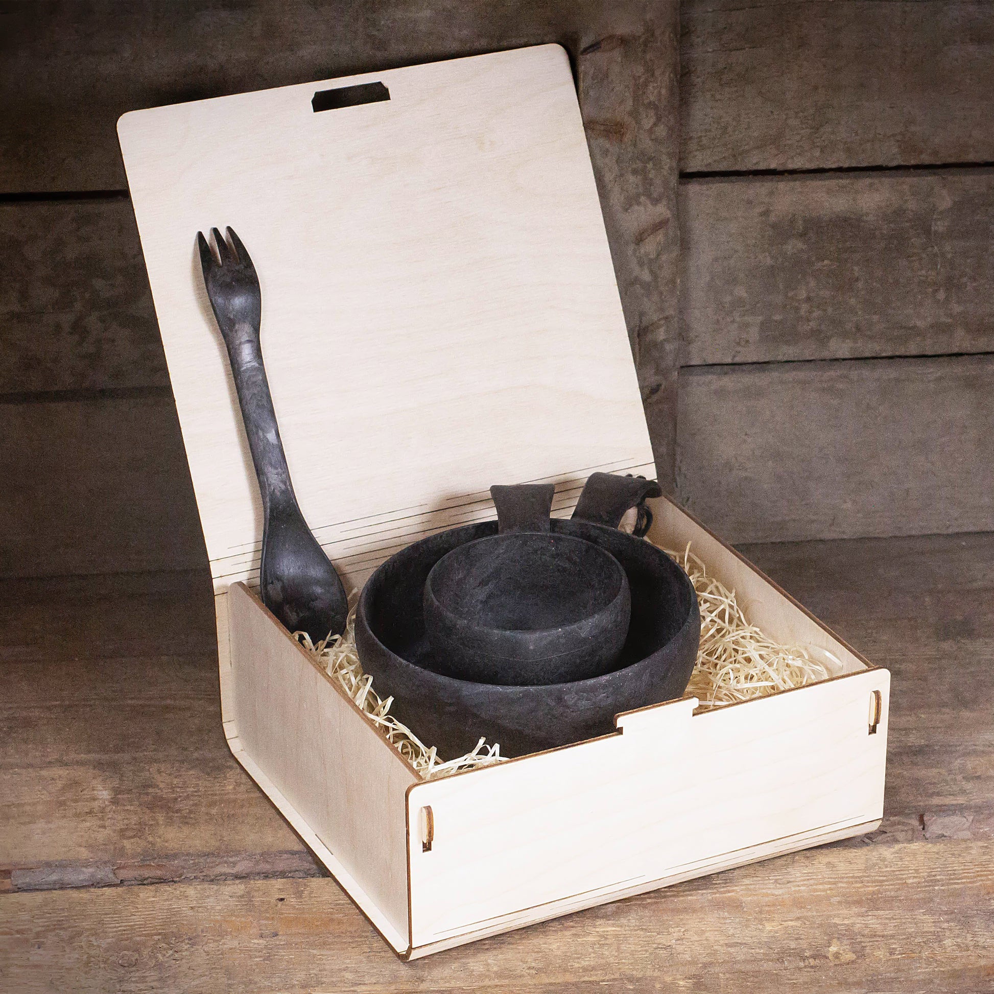 Kupilka Premium S Geschenkset enthält ein praktisches dreiteiliges Kupilka-Set, verpackt in einer schönen, handgefertigten Birkenholz-Kiste von der finnischen Firma Kolo Design Oy. Das Set ist ein schönes und langlebiges Geschenk für alle, die einen besonderen Tag feiern.