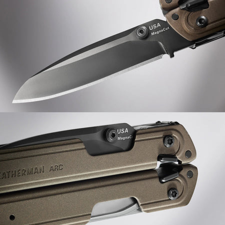 Das Leatherman ARC® ist das erste Multitool, für dessen Klinge MagnaCut®-Stahl verwendet wurde. Dieser Klingenstahl sorgt für eine scharfe Schneide bei gleichzeitiger Korrosionsbeständigkeit und Härte. Trotzdem lässt sie sich leicht nachschärfen.