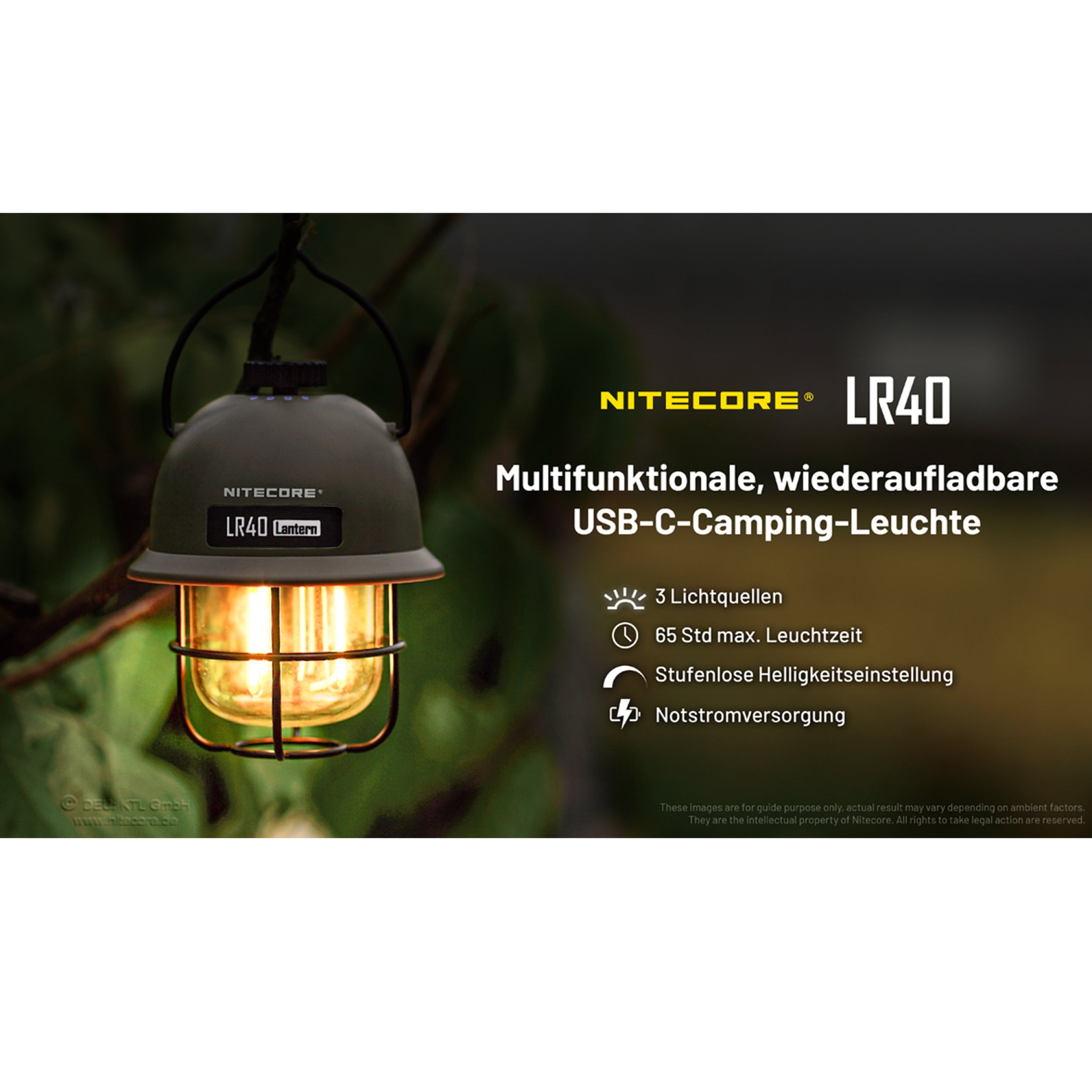 Lieferumfang: Nitecore LR40, USB-C Ladekabel, Bedienungsanleitung