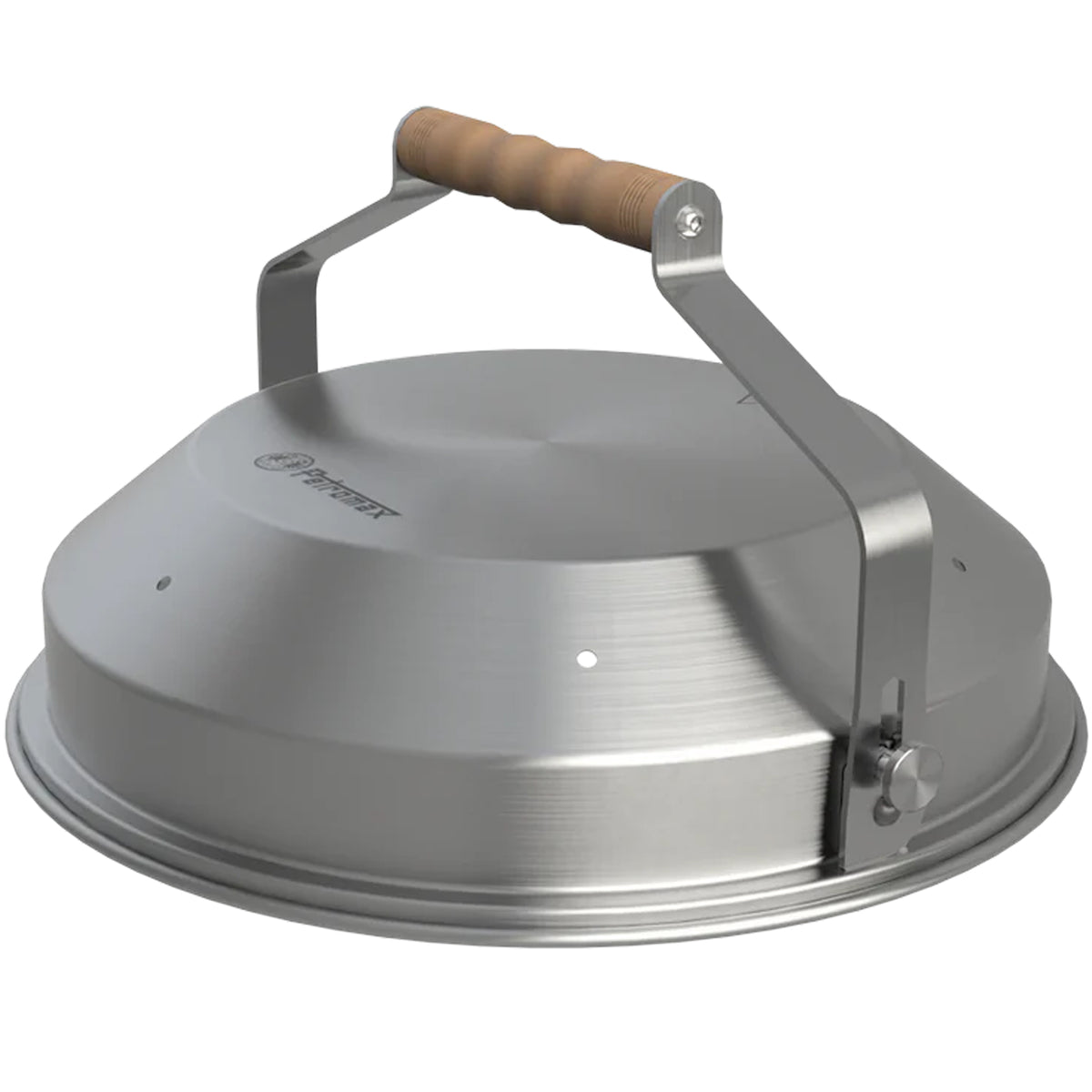 Mit der Petromax Grillhaube aus Edelstahl verwandelst Du deinen Atago Grill in einen mobilen Outdoor-Backofen mit Ober- und Unterhitze, der knusprige Gerichte zaubert und dank dem Auffangen warmer Luft, Brennmaterial spart.
