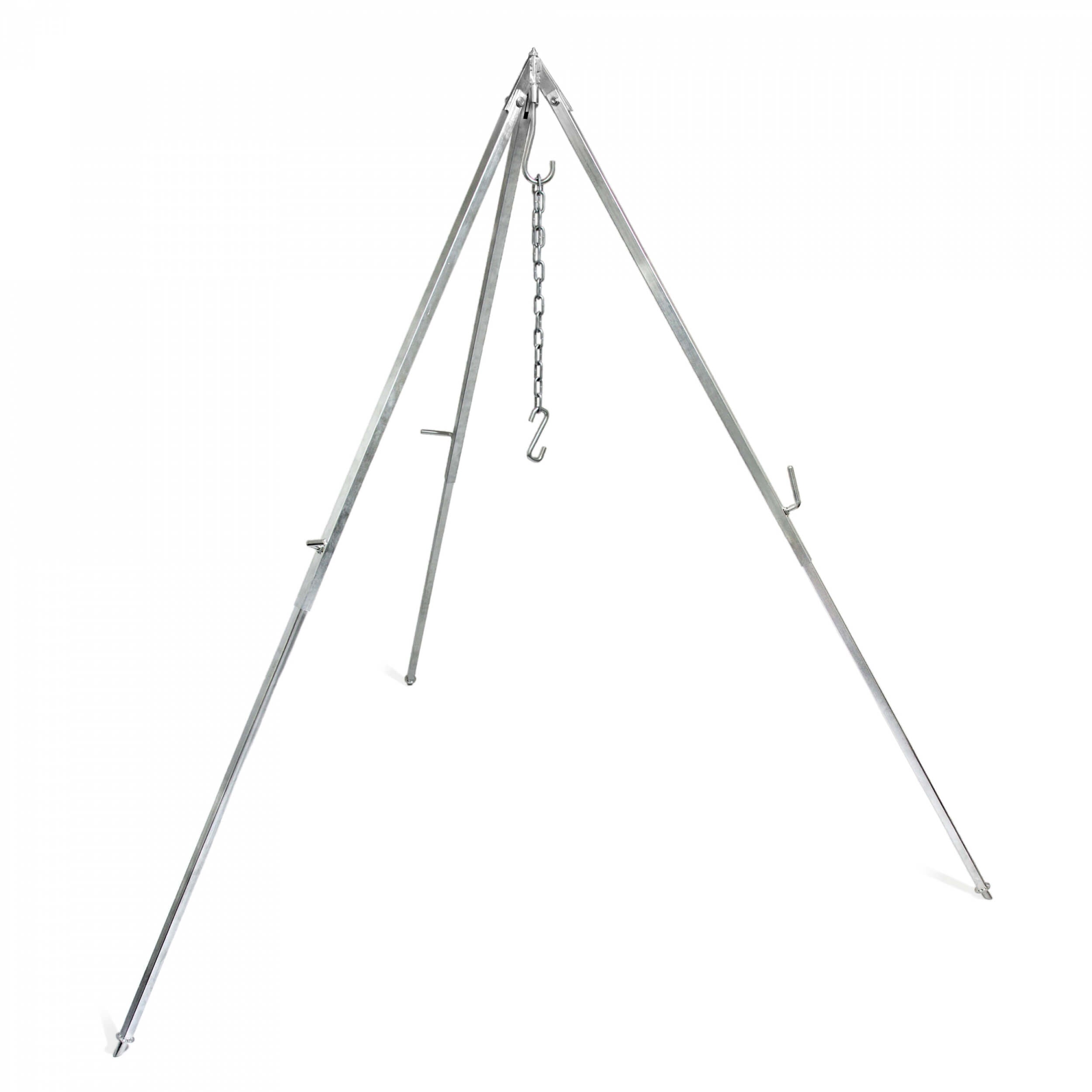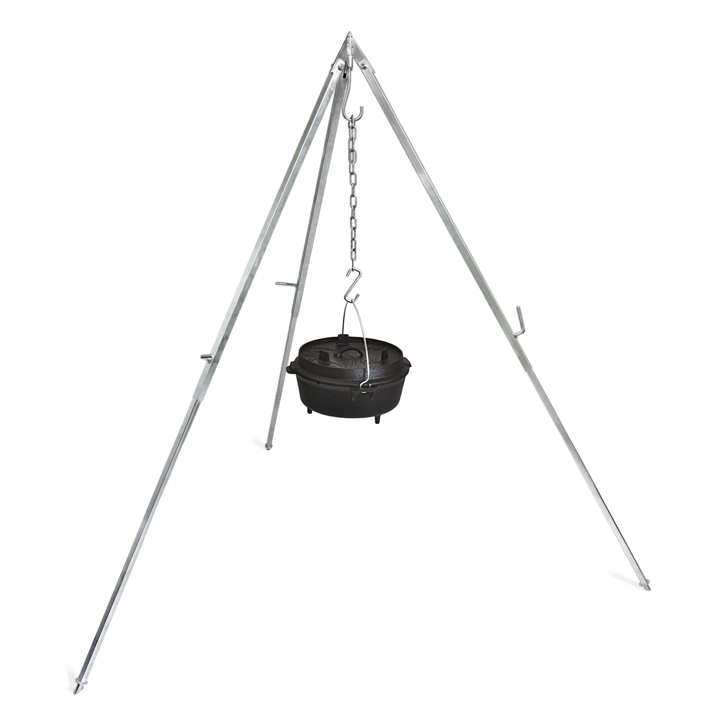 Mit dem Petromax Dreibein kann einfach und effizient die Outdoor-Küche perfektioniert werden. An dem Haken des robusten Dreibeins lässt sich ein Grillfest oder der Petromax Feuertopf einfach aufhängen. Durch die variable Kette kann der Abstand zwischen Topf und Kessel und dem Feuer jederzeit verändert werden. Die abgeschrägten Füße sorgen auf den verschiedensten Böden für einen sicheren Stand des Dreibeins. Zudem ist jedes Bein einzeln und Stufenlos höhenverstellbar, sodass sich Unebenheiten des Untergrunds mühelos ausgleichen lassen.