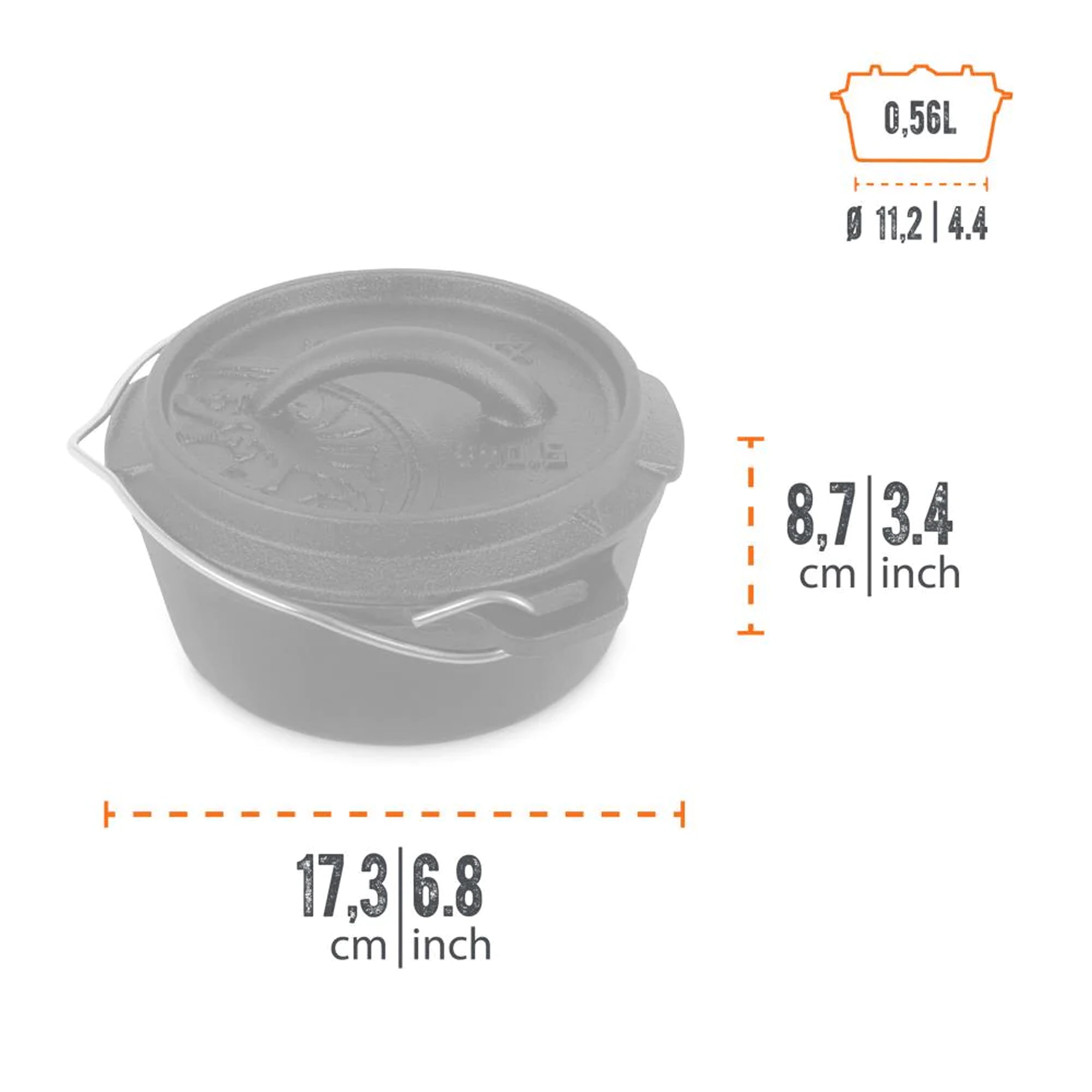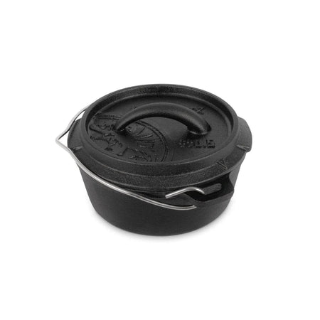 Durch die hervorragenden Eigenschaften des Gusseisens und die spezielle Oberflächenstruktur wird die Wärme effizient gespeichert und weitergeleitet. Die vorbehandelte Oberfläche (seasoned finish) macht ein erstmaliges Einbrennen unnötig und der robuste Feuertopf kann sofort verwendet werden. Im Freien wird er auf dem offenen Feuer oder mit Holzkohle verwendet. Der erhöhte Rand des Deckels ermöglicht es, Glut oder Holzkohle auch auf dem Feuertopf zu platzieren. So wird der Feuertopf von allen Seiten beheizt und eignet sich beispielsweise auch zum Brot backen.
