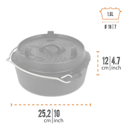 Lieferumfang: 1x Feuertopf (Dutch Oven), 1x Gebrauchsanleitung