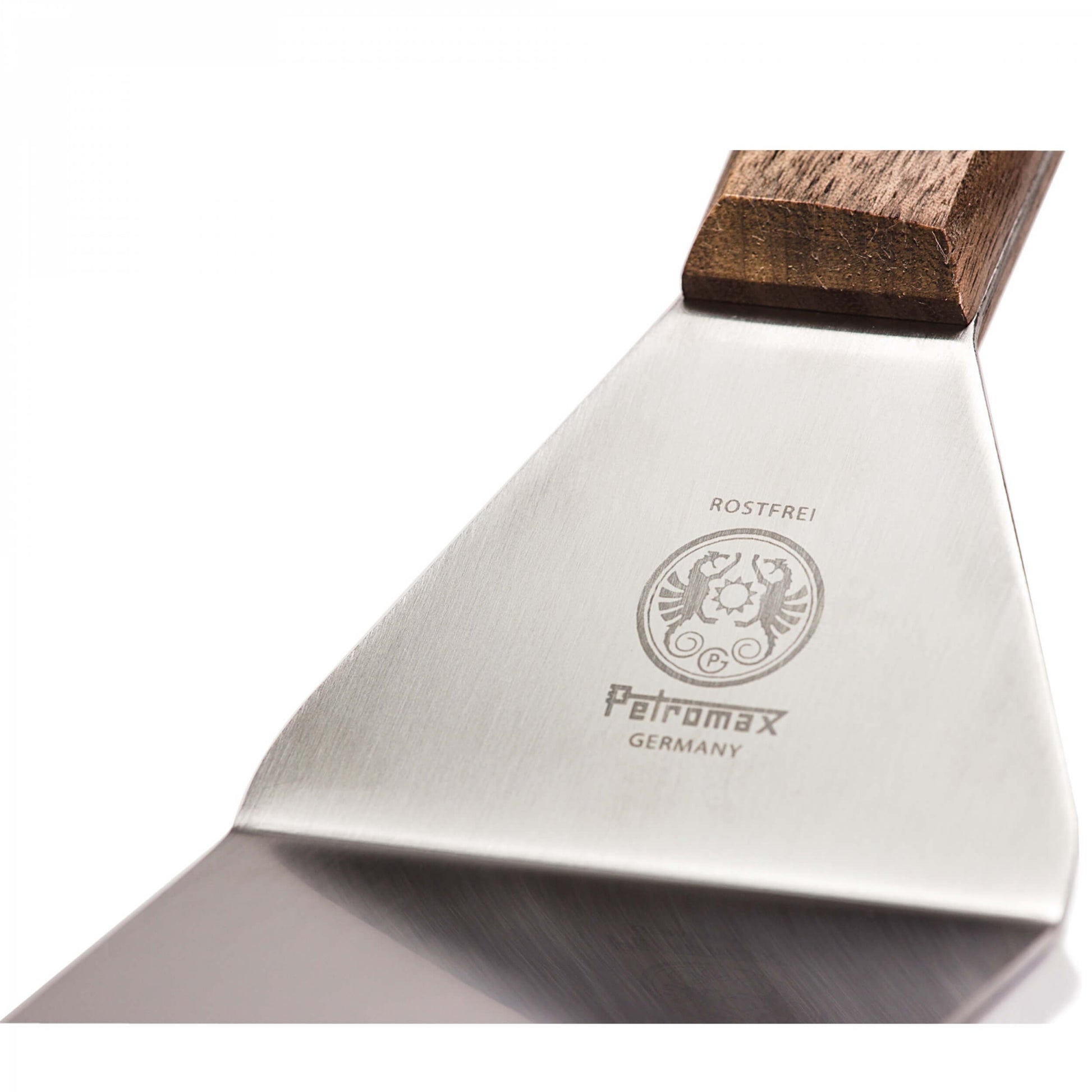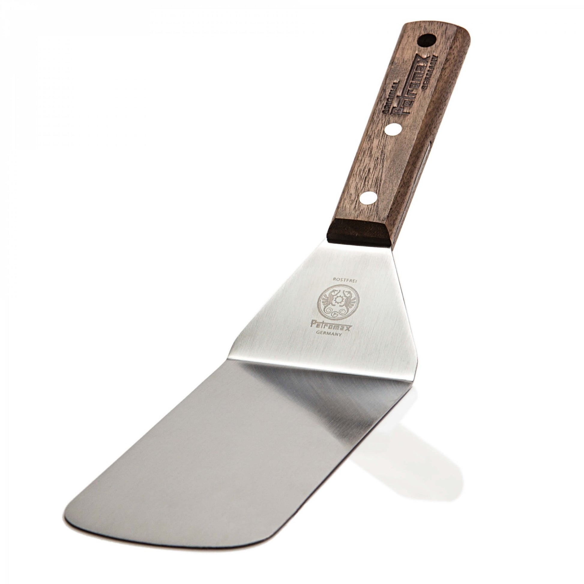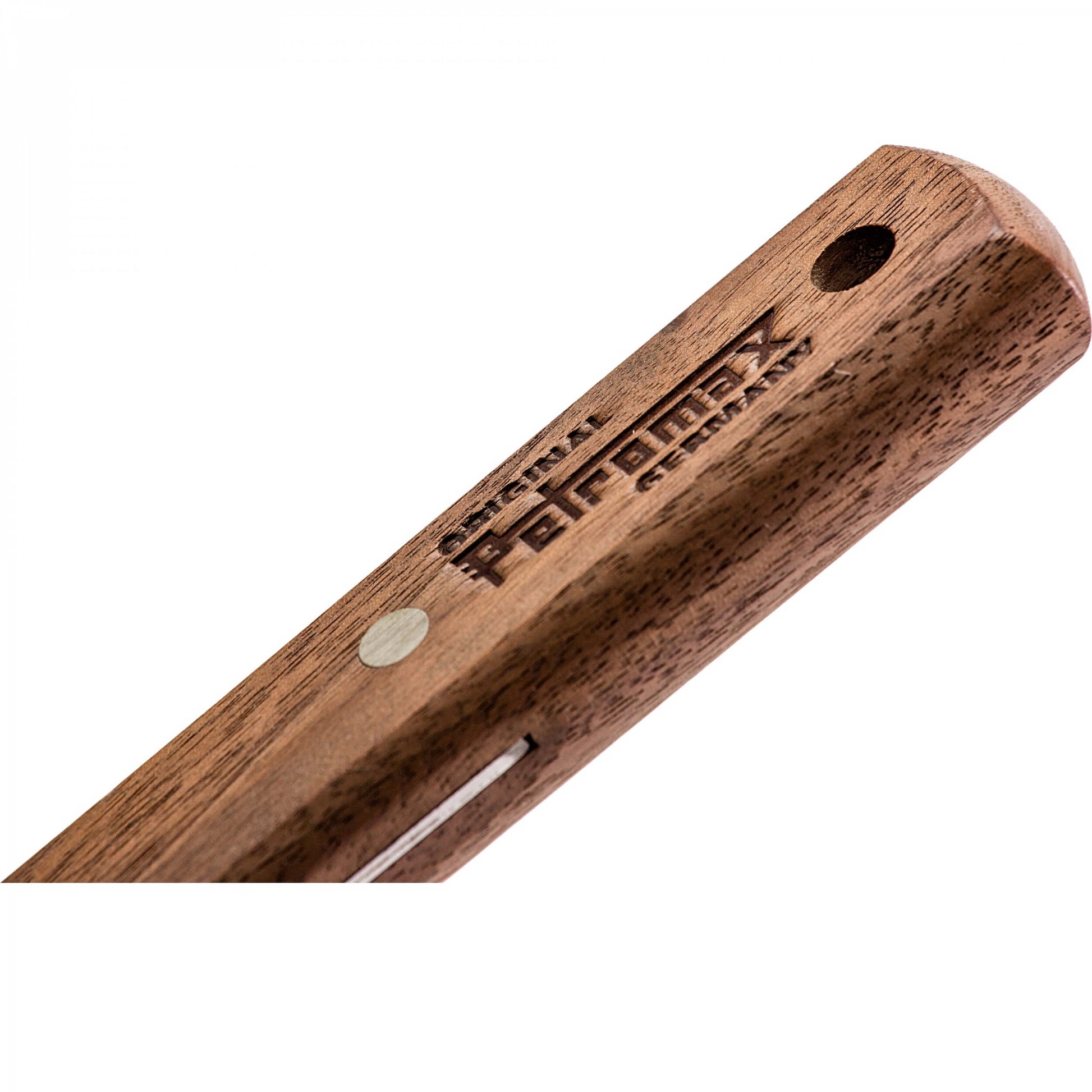 Damit du beim Brutzeln immer alles im Griff hast, verjüngt sich die Edelstahlplatte zur Vorderkante. So bleibt sie biegsam und flexibel, damit es dir gelingt Gargut jeder Größe zu wenden. Zugleich ist der Pfannenwender stabil genug, um damit Bratensatz vom Pfannen- oder Topfboden zu lösen. Der biegsame Wender eignet sich übrigens besonders gut für die Petromax Grillschalen fs38, fs48 und fs56. Dank des Lochs am Griffende kannst du ihn bequem aufhängen und verstauen. Weil der Grill- und Pfannenwender mit einem kurzen und einem langen Griff erhältlich ist, wird er in deiner favorisierten Ausführung schnell zum unverzichtbaren Küchenfreund.