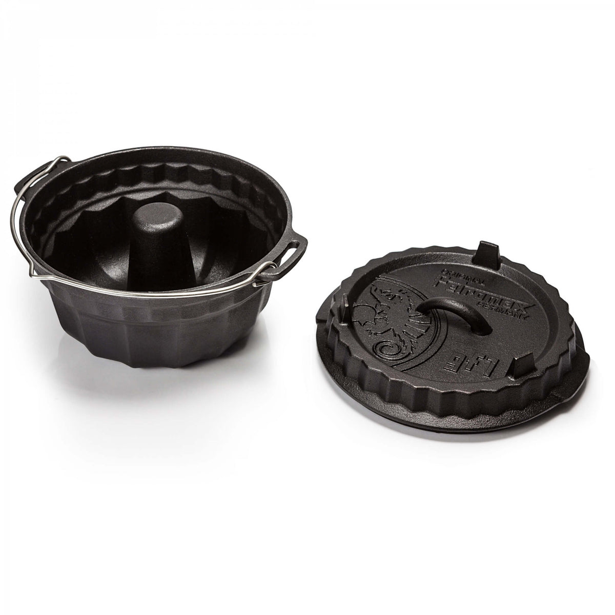 Mit der gusseisernen Petromax Gugelhupfform lassen sich saftige Kuchen, leckere Aufläufe oder Brote in der klassischen Kranzform backen. Der multifunktionale Gardeckel bietet nicht nur die Oberhitze für den Kuchen in der Draußen-Küche, sondern verfügt umgedreht über eine Tortenbodenfunktion. Mit der Form samt praktischem Deckel erweitert Petromax das Angebot seiner Gusseisenprodukte um ein weiteres cleveres und zugleich zeitloses Modell.