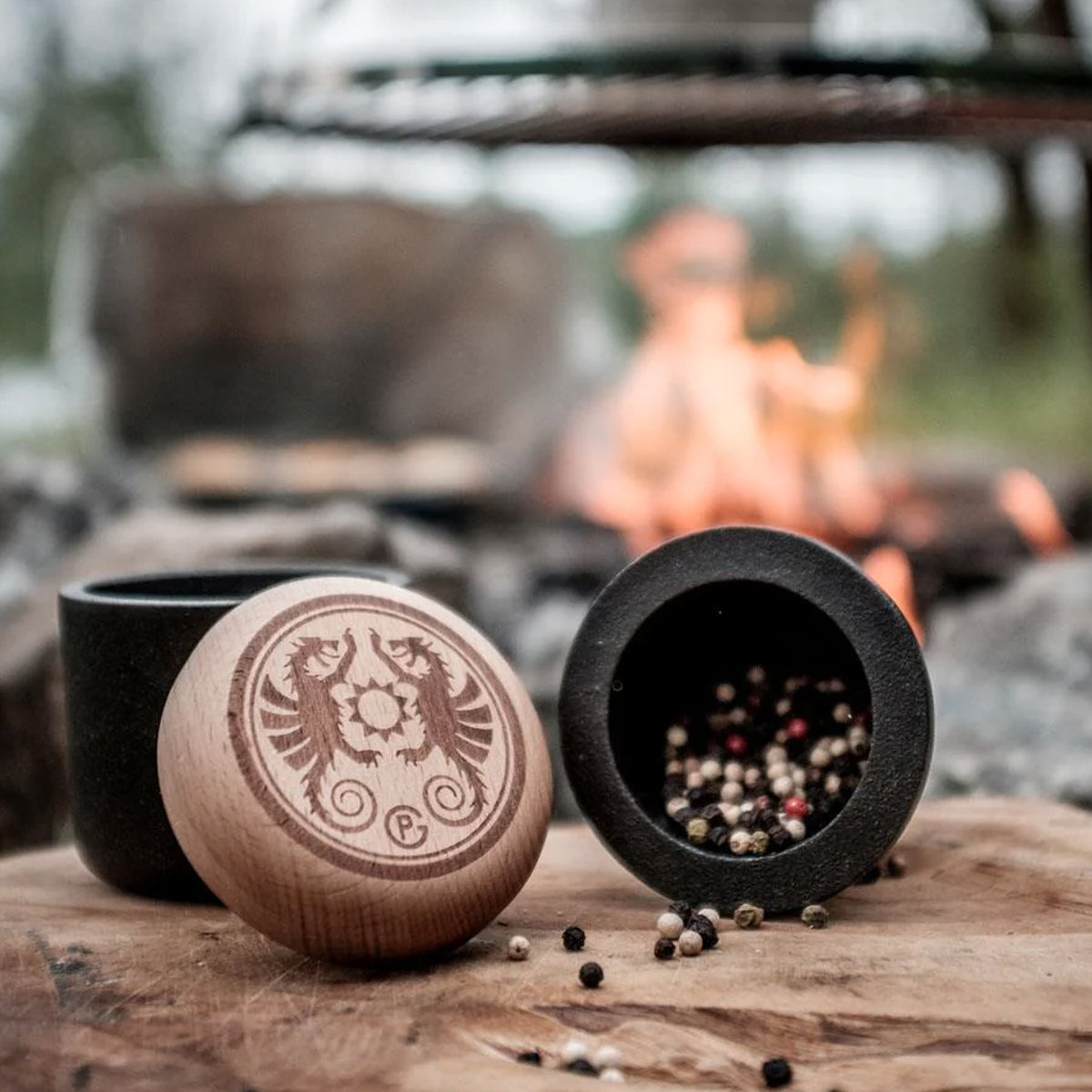 Im Petromax Handmörser zerkleinerst du mit wenig Kraft Gewürze, Nüsse und Samen für vielfältige und kreative Gerichte über dem Feuer. Dafür genügt schon eine kleine Drehbewegung, denn durch das Eigengewicht von Möser und Stößel zermahlst du die Gewürze fast ohne Anstrengung.