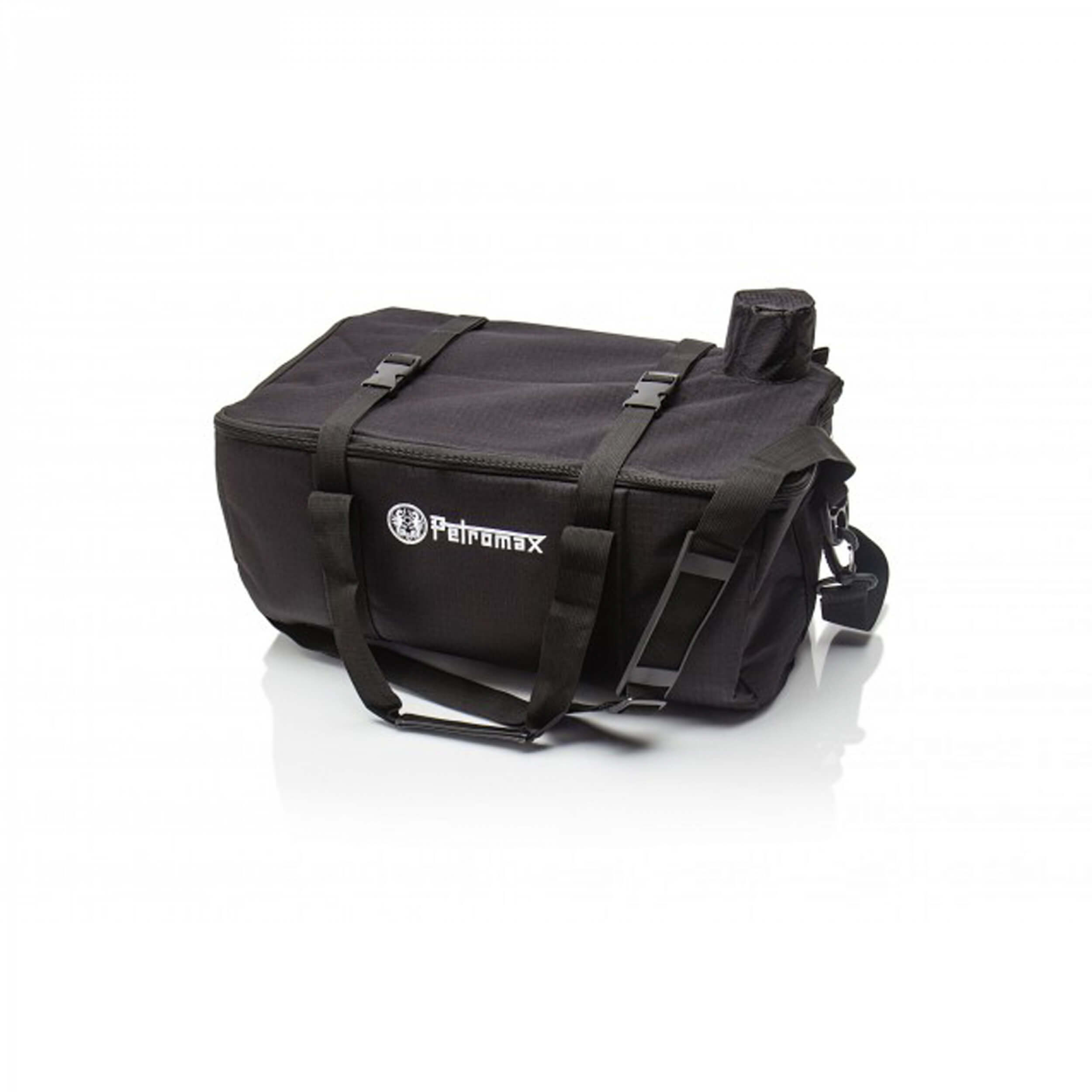 Im Taschendeckel findet sich eine geräumige Reißverschlusstasche: Zubehör oder Kleinteile wie Petromax Feuerkit oder der Aschefang finden hier Platz. Dass die Tasche wie für den Loki gemacht ist, zeigt sich auch dort, wo sich der Taschendeckel um den Ofenrohransatz legt. Bestickt ist die Tasche außerdem mit dem Petromax Logo, das seit jeher für exzellente Qualität steht.