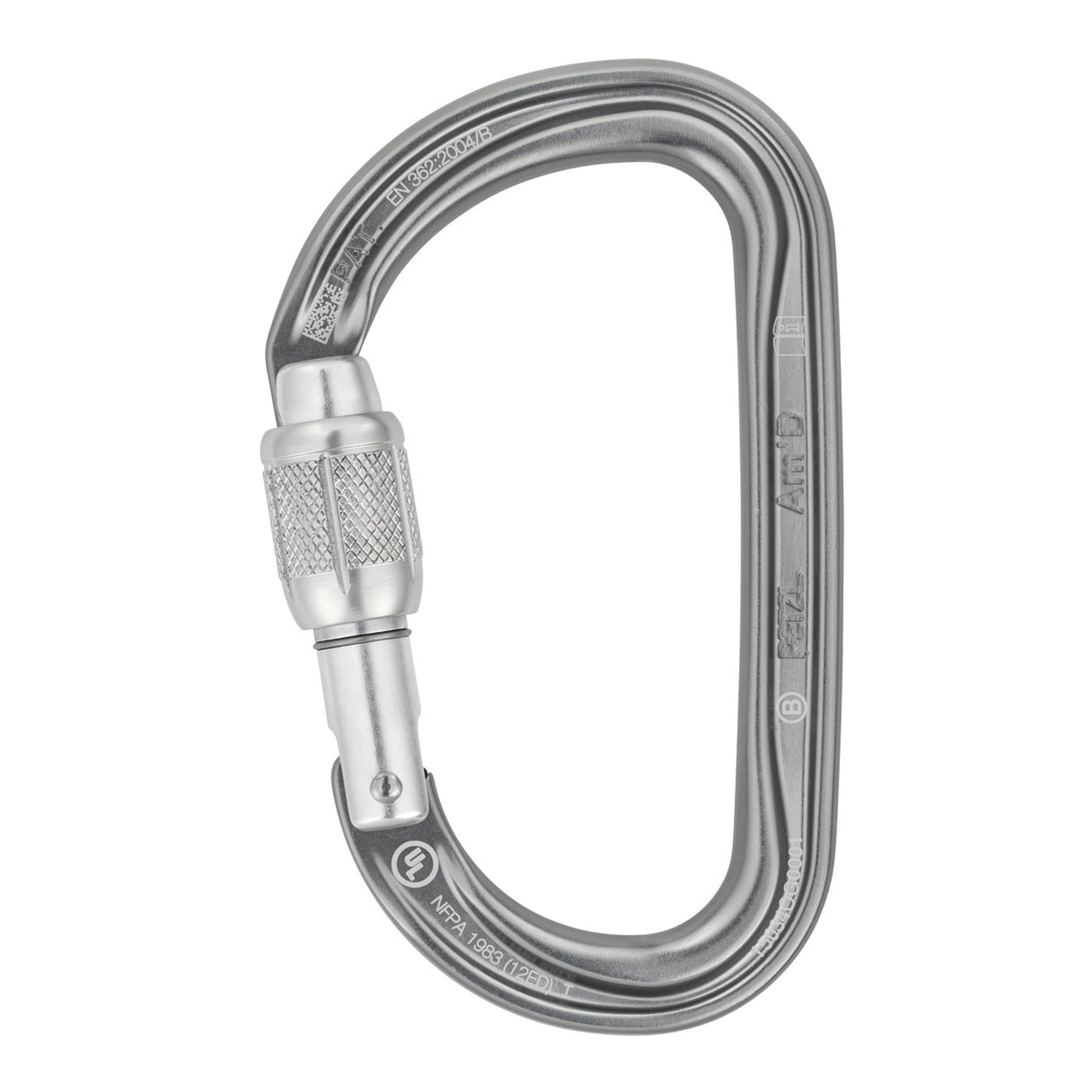 Der leichte asymmetrische Petzl Am'D-Karabiner ist aus Aluminium gefertigt. Seine D-Form eignet sich hervorragend zum Einhängen von Abseilgeräten und Verbindungsmitteln zur Arbeitsplatzpositionierung. Die kantenfreie Oberfläche an der Innenseite und das Keylock-System erleichtern das Ein- und Aushängen. Manueller SCREW-LOCK Schraubverschluss mit rotem Indikator, der sichtbar ist, solange der Karabiner nicht verriegelt ist.