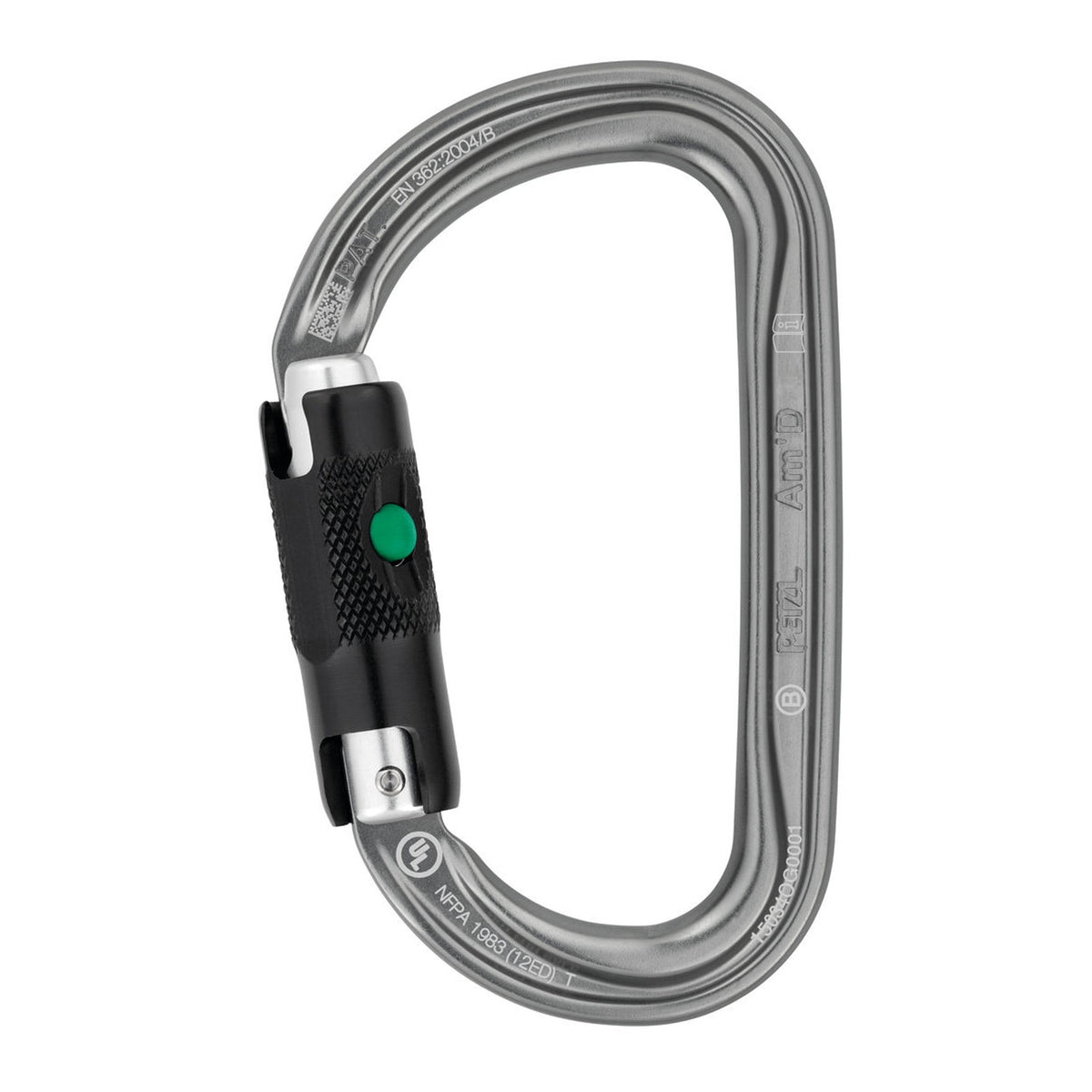 Der leichte asymmetrische Petzl Am'D-Karabiner ist aus Aluminium gefertigt. Seine D-Form eignet sich hervorragend zum Einhängen von Abseilgeräten und Verbindungsmitteln zur Arbeitsplatzpositionierung. Die kantenfreie Oberfläche an der Innenseite und das Keylock-System erleichtern das Ein- und Aushängen.