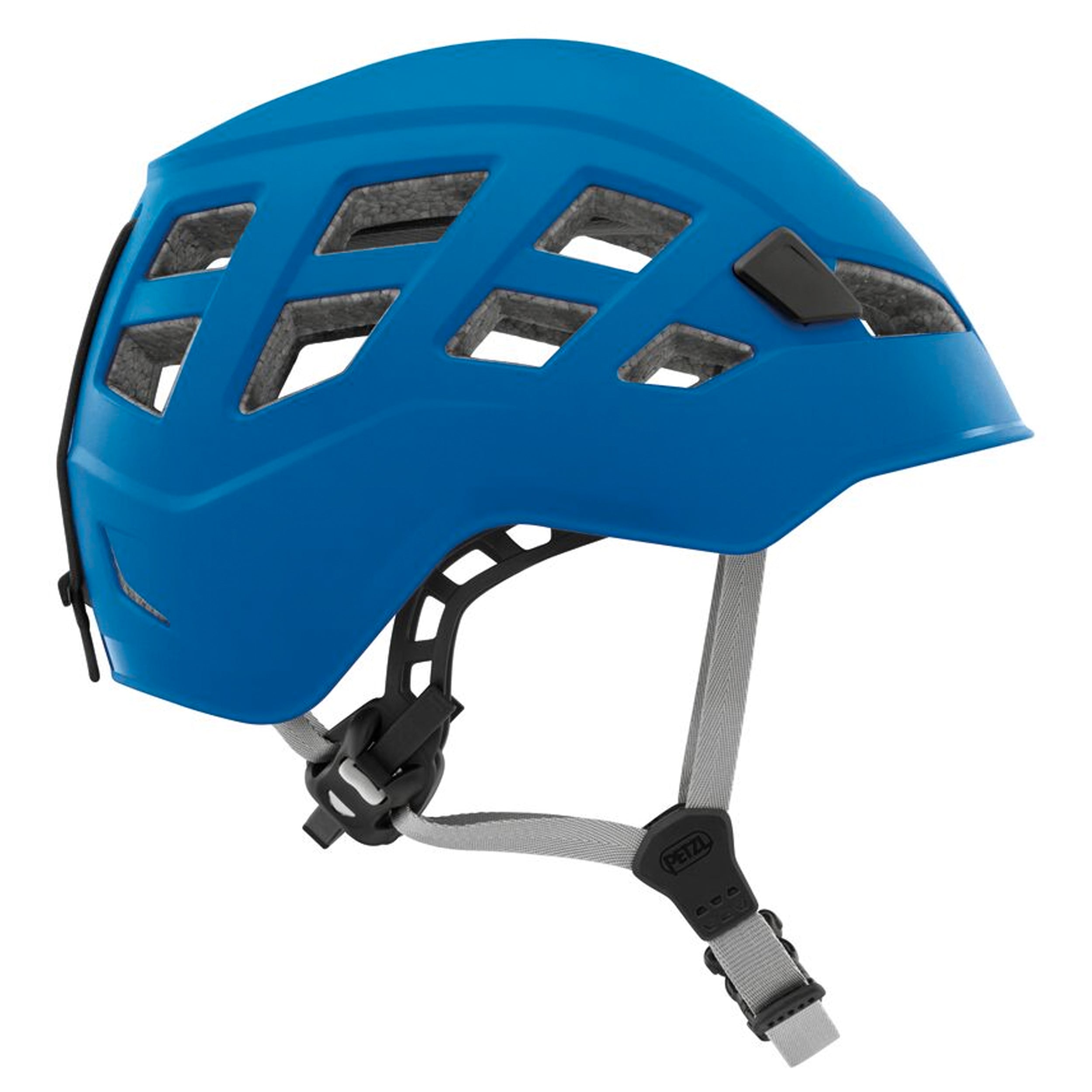 - Den Kopf umschließendes, im Nackenbereich tiefer gezogenes Design für optimalen Schutz vor Steinschlag sowie Aufprallschutz an den Seiten und im Vorder- und Hinterkopfbereich (Petzl-Label TOP AND SIDE PROTECTION)