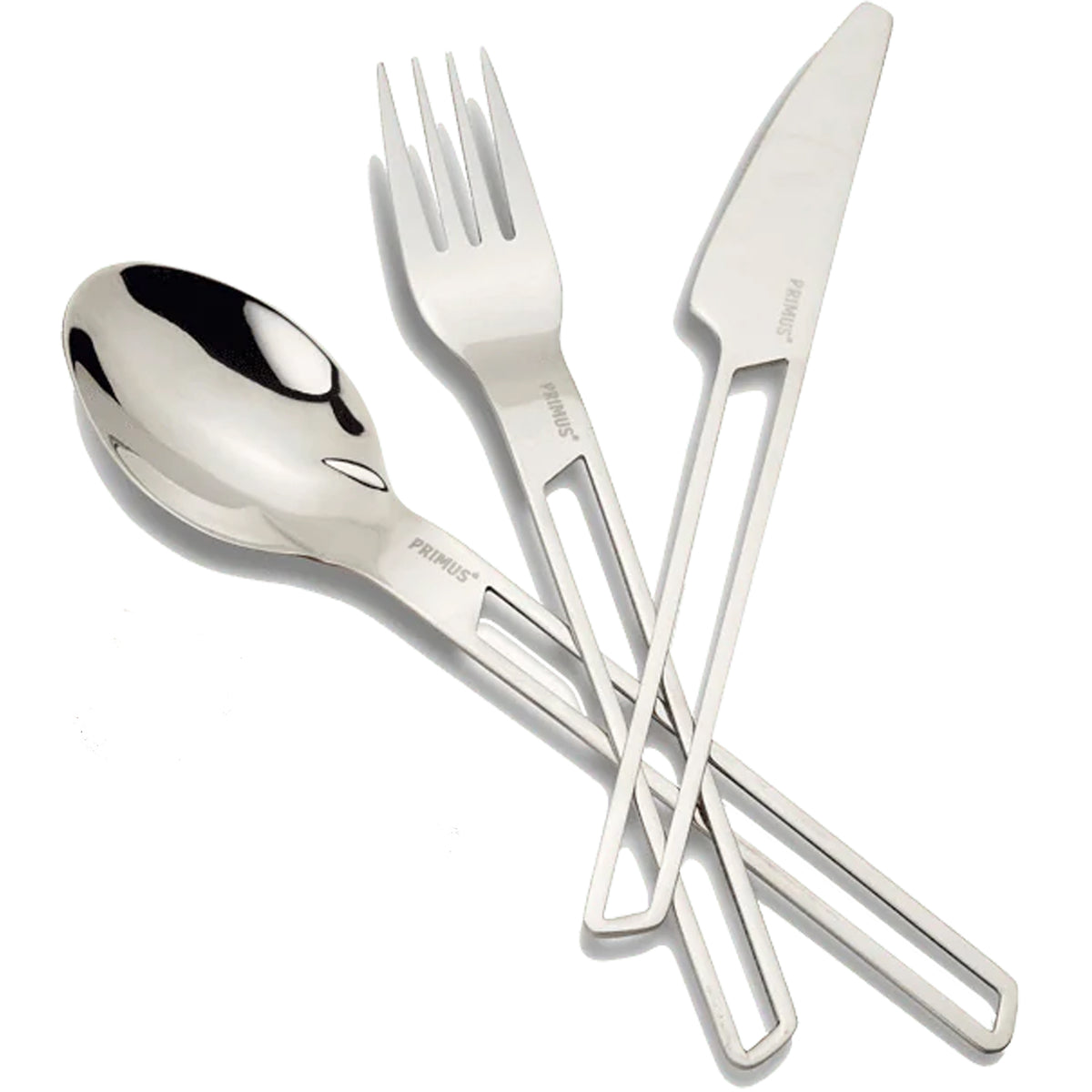 Das Primus Leisure Cutlery Set besteht aus einem Messer, einer Gabel und einem Löffel, die alle aus rostfreiem 18/8-Stahl gefertigt sind und sich leicht reinigen lassen. Alles lässt sich kompakt zusammenpacken, und eine Silikonmanschette sorgt dafür, dass alles an seinem Platz bleibt.