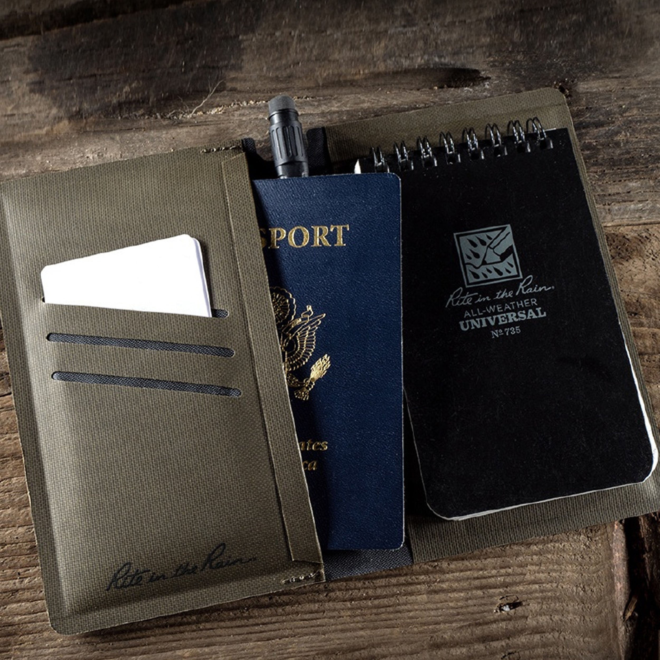 Das Rite in the Rain Monsoon Horizon Wallet bietet u.a. Platz für die kompakte Notizbücher und wetterfesten Stifte, 6 Kreditkarten, den Reisepass und alles, was Sie im Alltag brauchen.