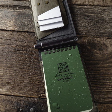 Das Rite in the Rain Monsoon Updraft Wallet bietet ausreichend Stauraum für die wichtigsten Dinge des Alltags: Stift, Kreditkarten und Mini-Notebook oder Notizbuch für unterwegs. Passend für die 3" x 5" Top Spiral Notebooks.