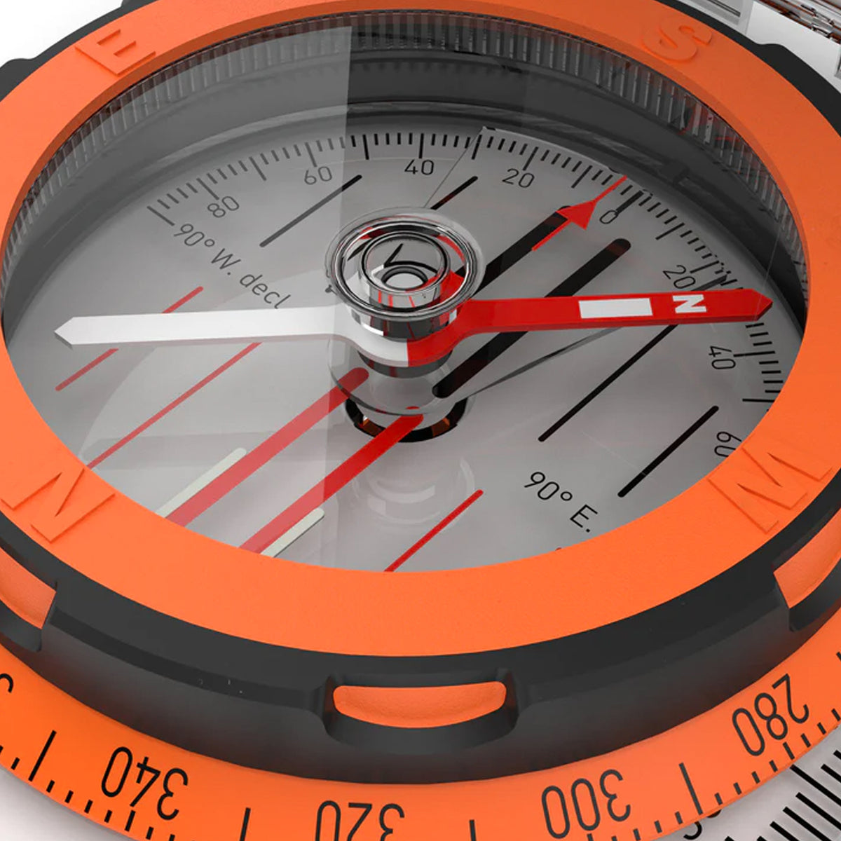 Silva Expedition S ist mit einem griffigen Ring ausgestattet, Gummifüße an der Unterseite, damit der Kompass gut an der Karte anliegt, abnehmbarer Trageschlaufe mit Sicherheitsöffnung, Neigungsmesser zur Bestimmung der Steilheit des Geländes, Leuchtmarkierungen für Navigation im Dunkeln, Lupe und Kartenmaßstäbe in Millimeter und Zoll. Bei Expedition befinden sich die Maßstäbe auf der Grundplatte, damit du Entfernungen leichter messen kannst. GPS-Maßstäbe 1:25 000 und 1:50 000. Zusätzlich gibt es integrierte Einstellungen für magnetische Fehlausrichtungen (Deklinationskorrektur).
