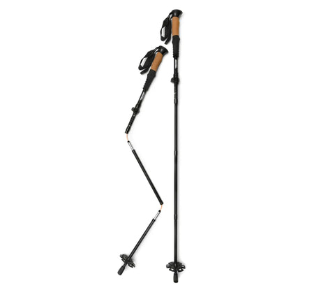 Die robuste Aluminiumkonstruktion garantiert lange Haltbarkeit, während die verlängerten Korkgriffe flexible Griffpositionen je nach Steigung ermöglichen. Die Länge lässt sich zwischen 115 und 135 cm einstellen. Und dank der dreiteiligen Z-Konstruktion kannst du die Stöcke kompakt verstauen – perfekt für Reisen oder zum Befestigen am Rucksack bei Mehrtagestouren.
