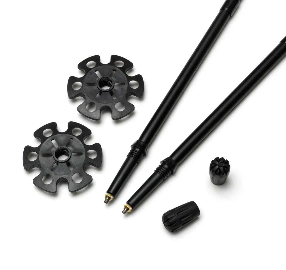 Mit Gummifüßen schonst du die Spitzen und gewinnst mehr Grip auf Asphalt oder Fels, während große Teller besseren Halt auf Schnee oder weichen Böden bieten.