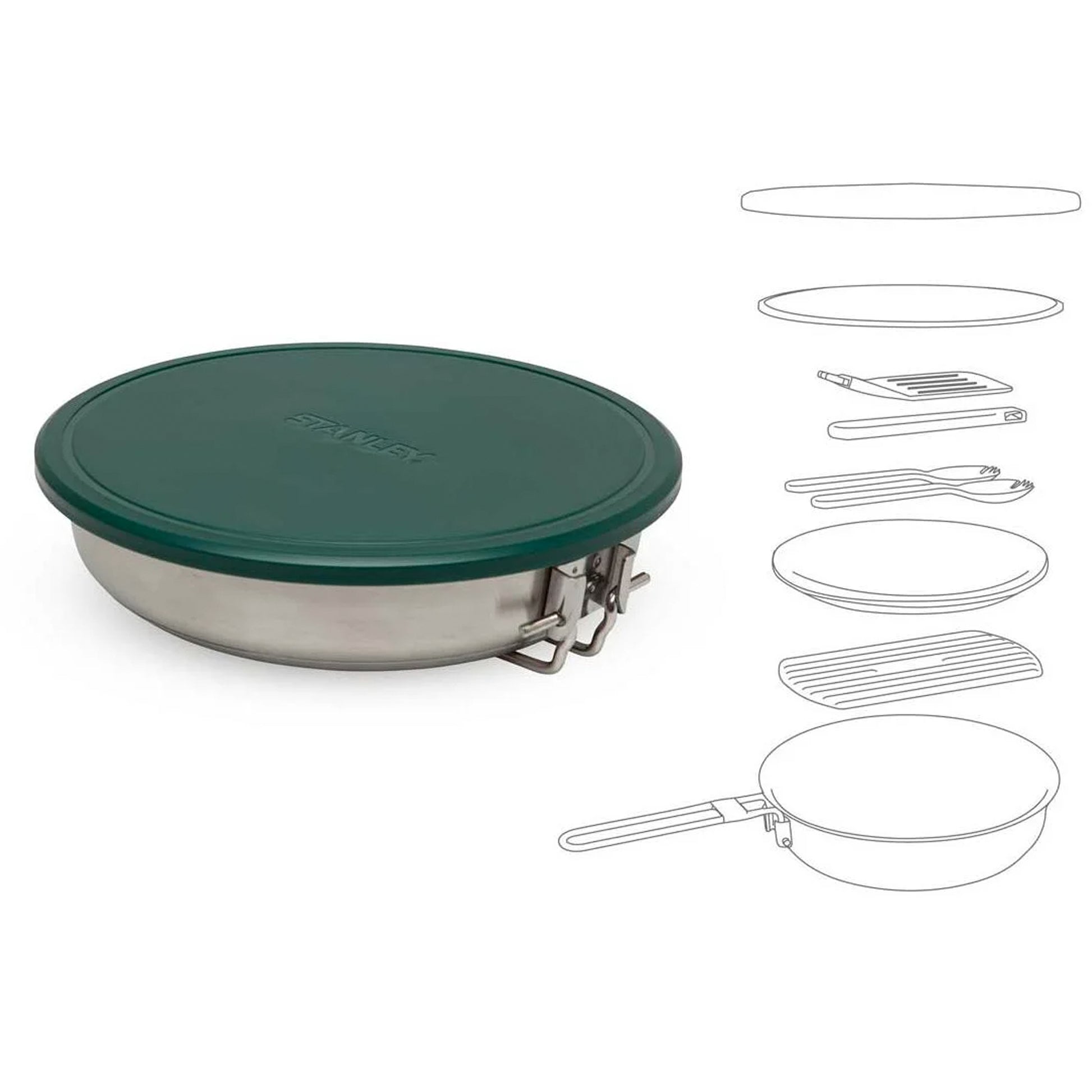 Das Stanley Adventure Fry Pan Set ist mit einer Vielzahl an Zubehör ausgestattet, welche alle platzsparend in der Pfanne untergebracht werden können.