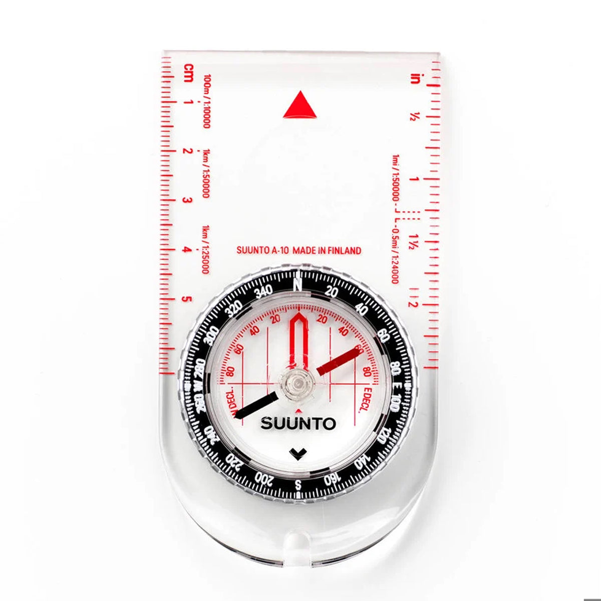 Der Suunto A-10 Kompass NH (nördliche Hemisphäre) ist ein minimalistischer aber äußerst präziser Bodenplatten-Kompass. Er ist leicht ablesbar und ideal für die Navigation mit Karte und Kompass. Der A-10 kann Distanzen in metrischen Einheiten messen. Sie werden in Rot angezeigt, damit sie auf topografischen Karten gut erkennbar sind.