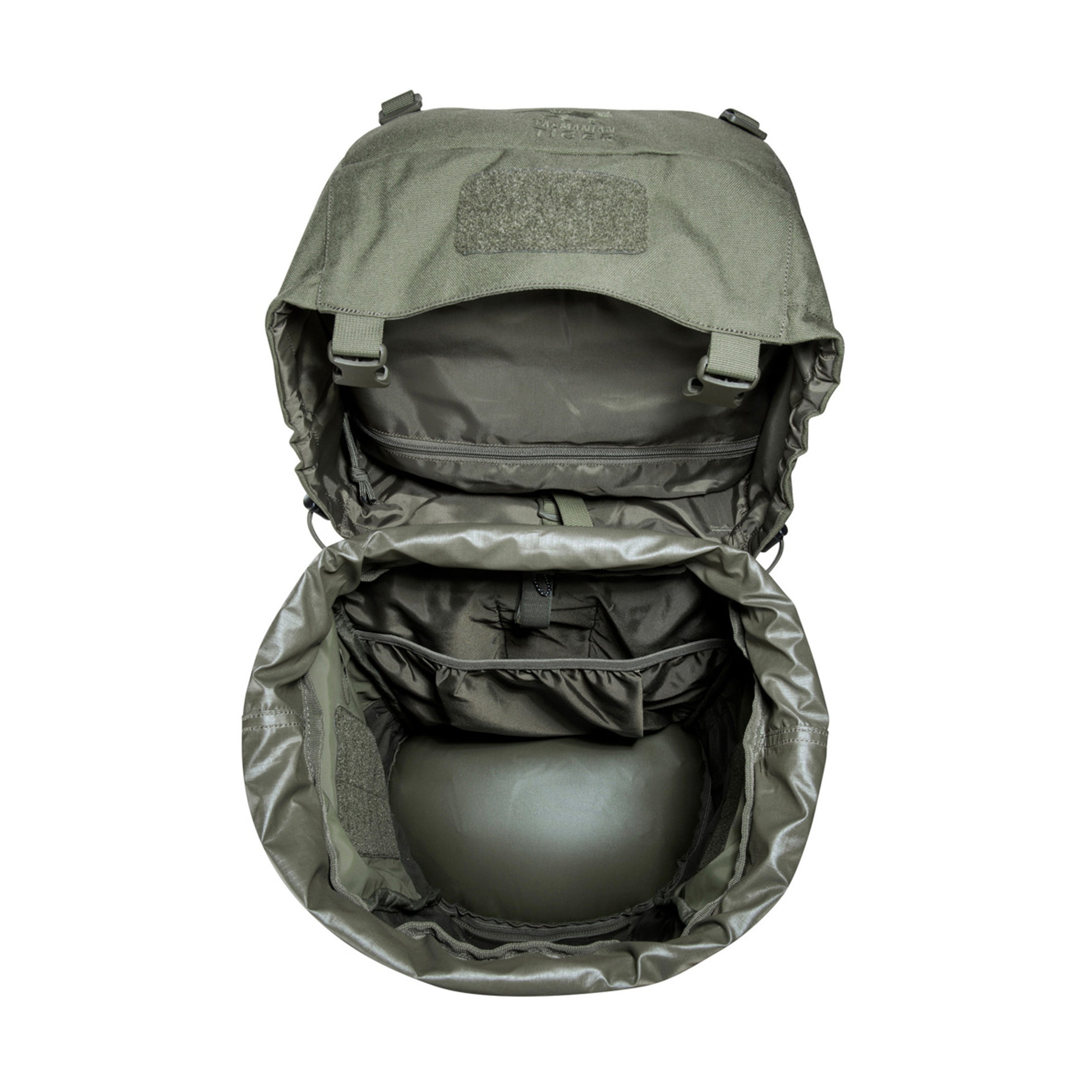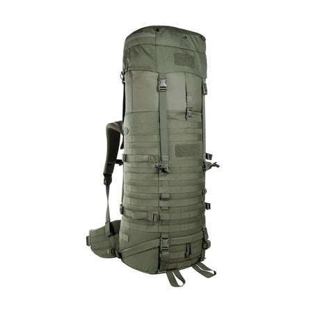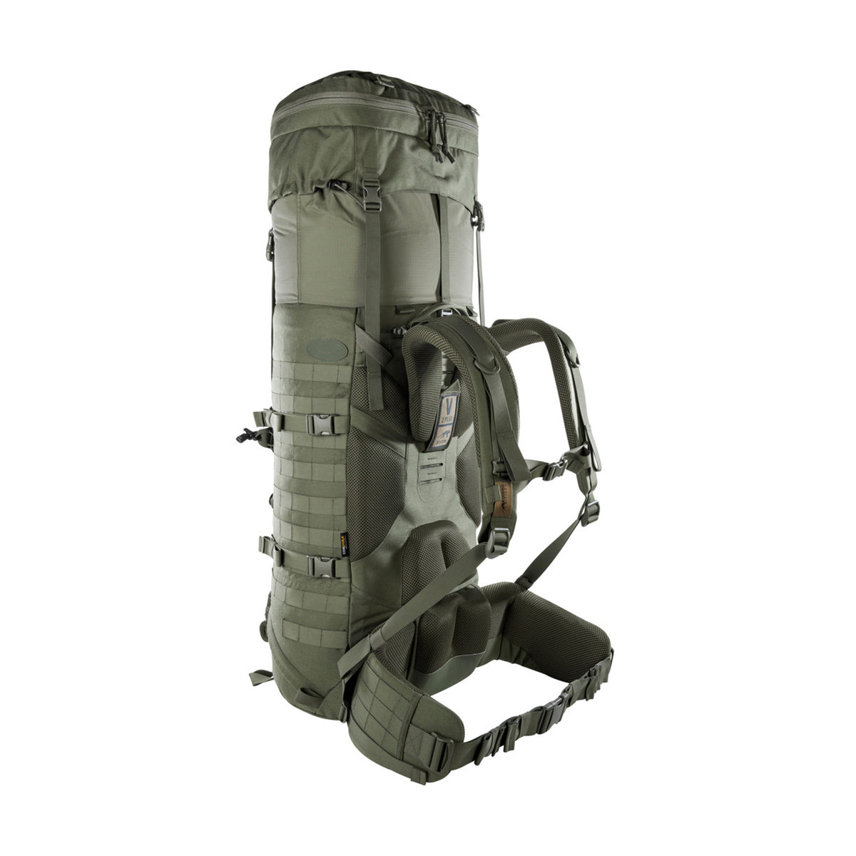 Der Tasmanian Tiger Base Pack bietet ein Volumen von 52 Litern und ist auf 65 Liter erweiterbar. Er besitzt einen höhenverstellbaren sowie abnehmbaren Deckel. Bei der Verwendung ohne Deckel wird der Rucksack mit dem gerollten Schneefang geschlossen. Front und Seiten sind mit MOLLE versehen. Der Hüftgurt kann abgenommen und separat als Warrior Belt verwendet werden.