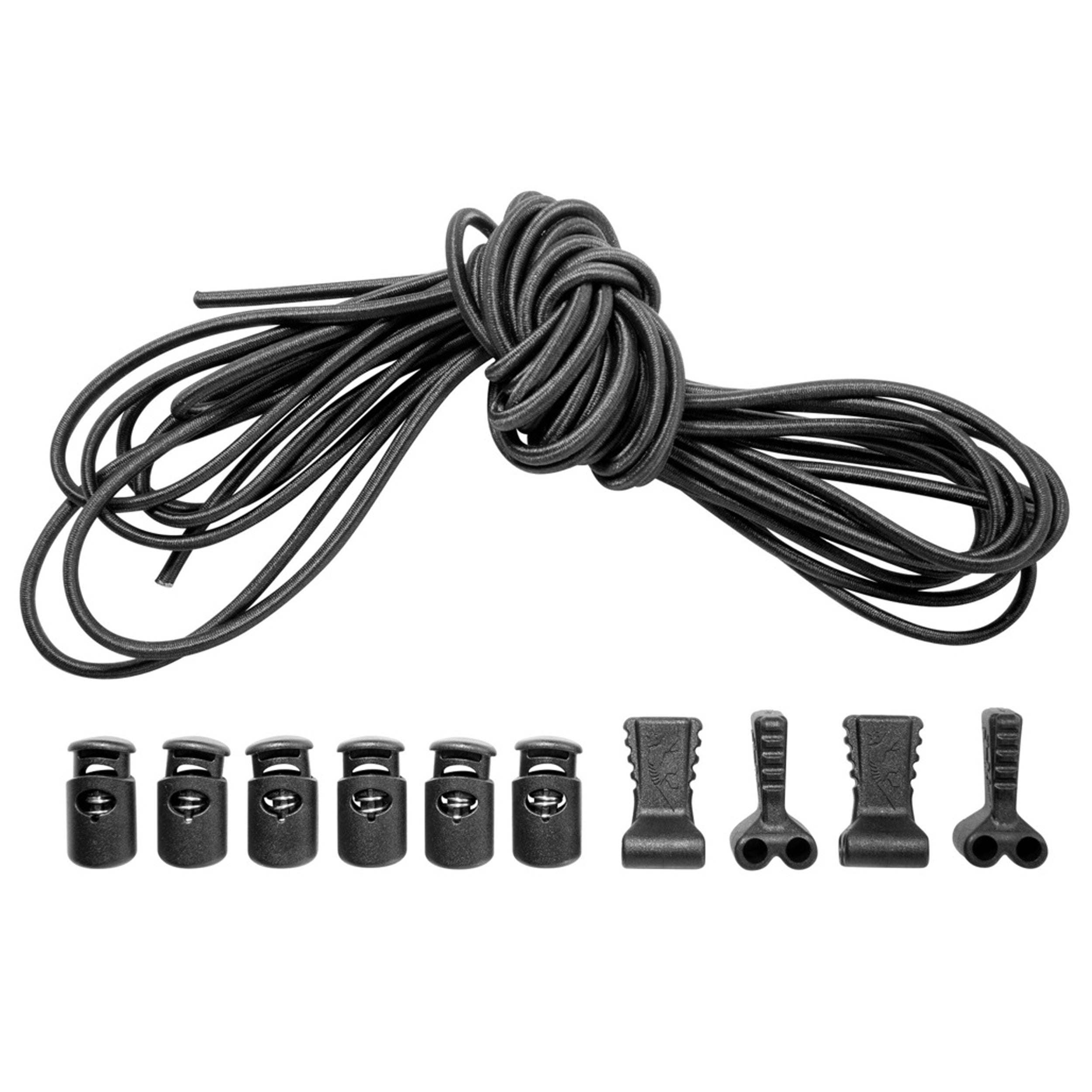Das Set besteht aus 6 Metern Mil-Spec Bungee-Cord, 4 ergonomisch geformten 3D Polymer Mag Pull Tabs Zuglaschen für Magazintaschen und 6 Kordelstoppern.