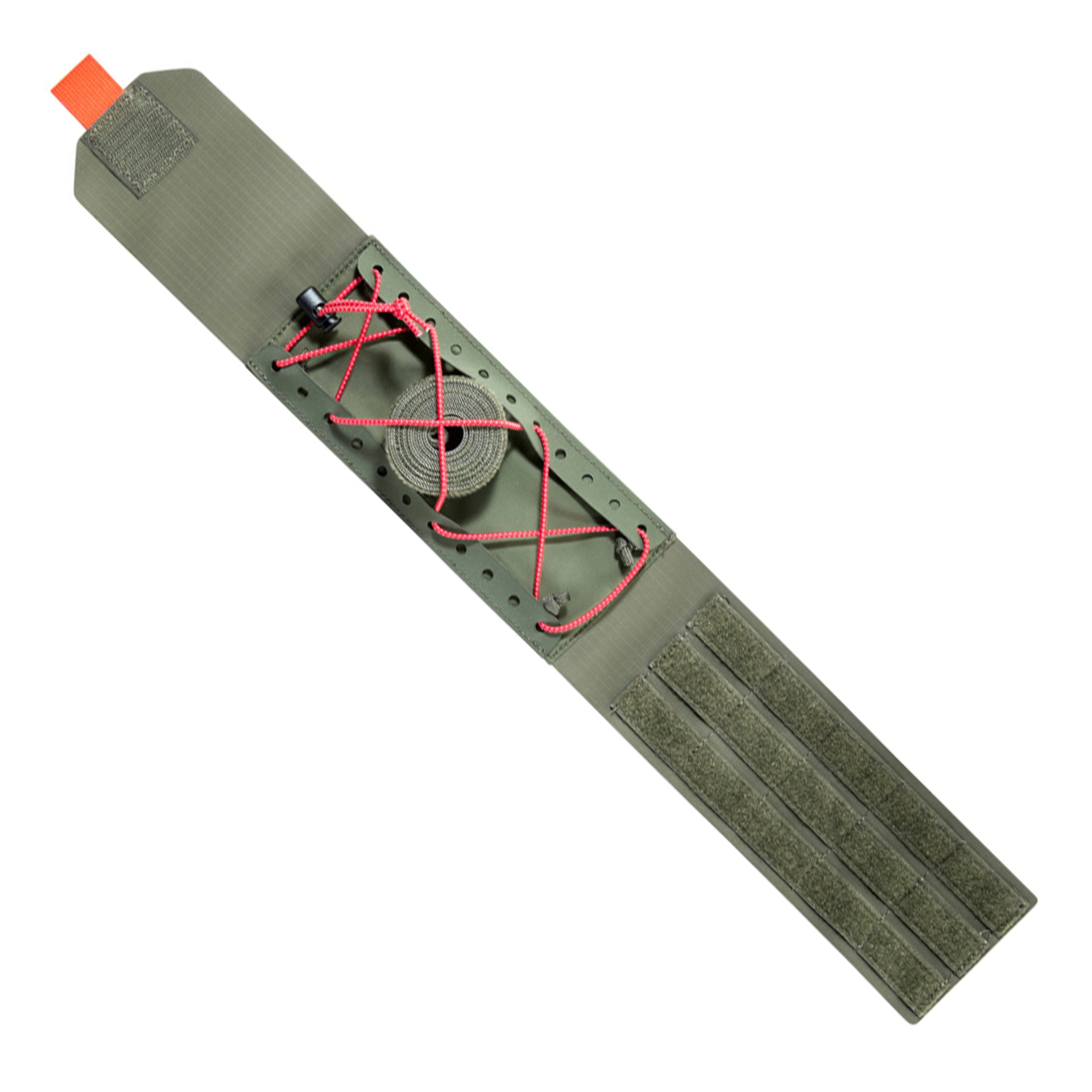 Mithilfe eines Verbindungsstücks aus einer Klett-Tegris®-Platte kann die TT IFAK Pouch Dual VL unter einem Plattenträger eingeklettet werden. Das Verbindungsstück ist beidseitig verwendbar sowie abnehmbar. Das individuell bestückbare Panel lässt sich zu beiden Seiten herausziehen.