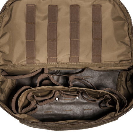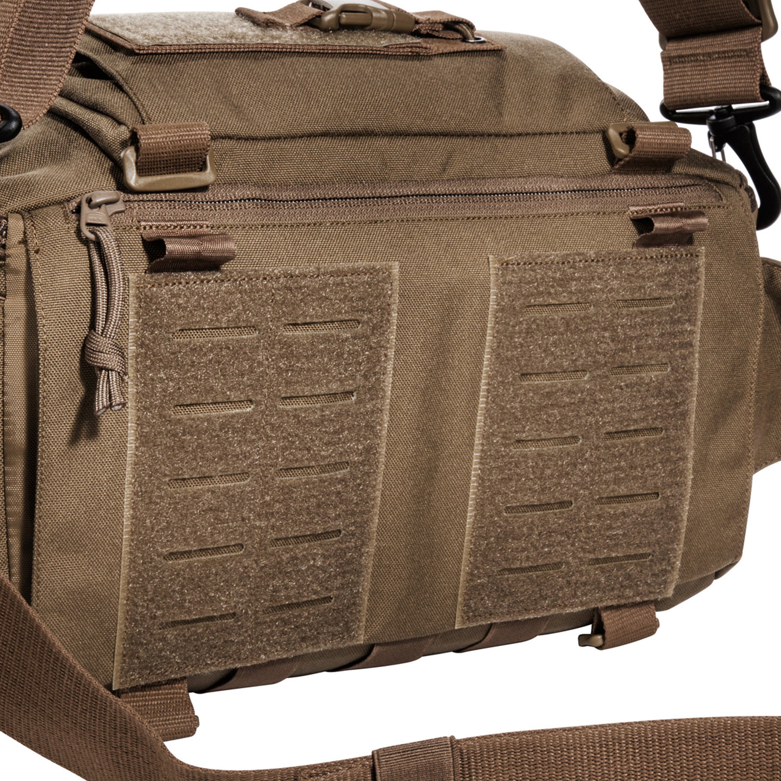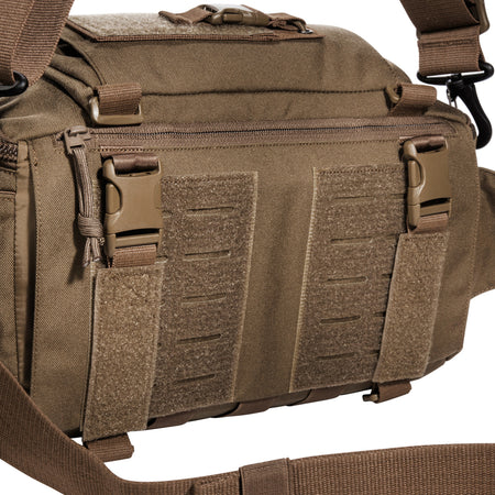 Die Tasmanian Tiger TT Medic Hip Bag besitzt eine intelligente Innenaufteilung für medizinische Ausrüstung. Für schnellen Zugriff lässt sich der Deckel nach oben aufziehen, auf diesem befindet sich eine Scherentasche. Die Seiten der Tasche sind mit MOLLE-Klett versehen. Der Hüftgurt kann abgenommen werden, das ermöglicht das Tragen als Schultertasche. Mithilfe spezieller Adapter kann die Tasche zudem auf Plattenträgern befestigt werden.