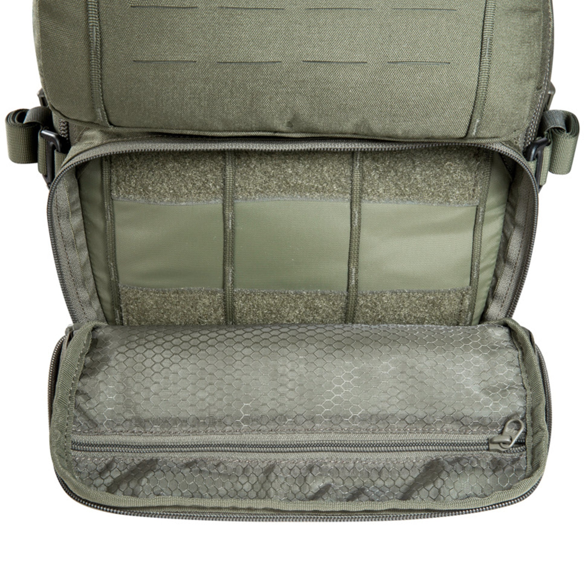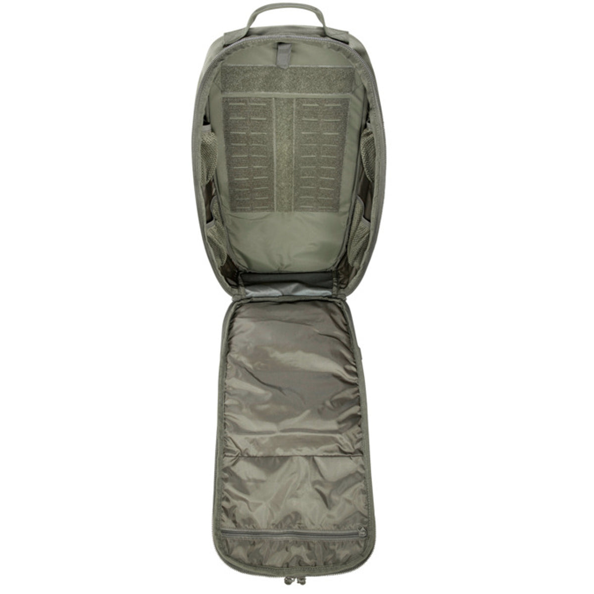 Das Hauptfach des 24-Liter-Rucksacks ist innen mit MOLLE-Klettflächen zur individuellen Bestückung belegt. Der TT Modular Combat Pack 24 SL verfügt zudem über drei Fronttaschen mit Unterteilungen, die untere bietet Platz für drei Magazine.