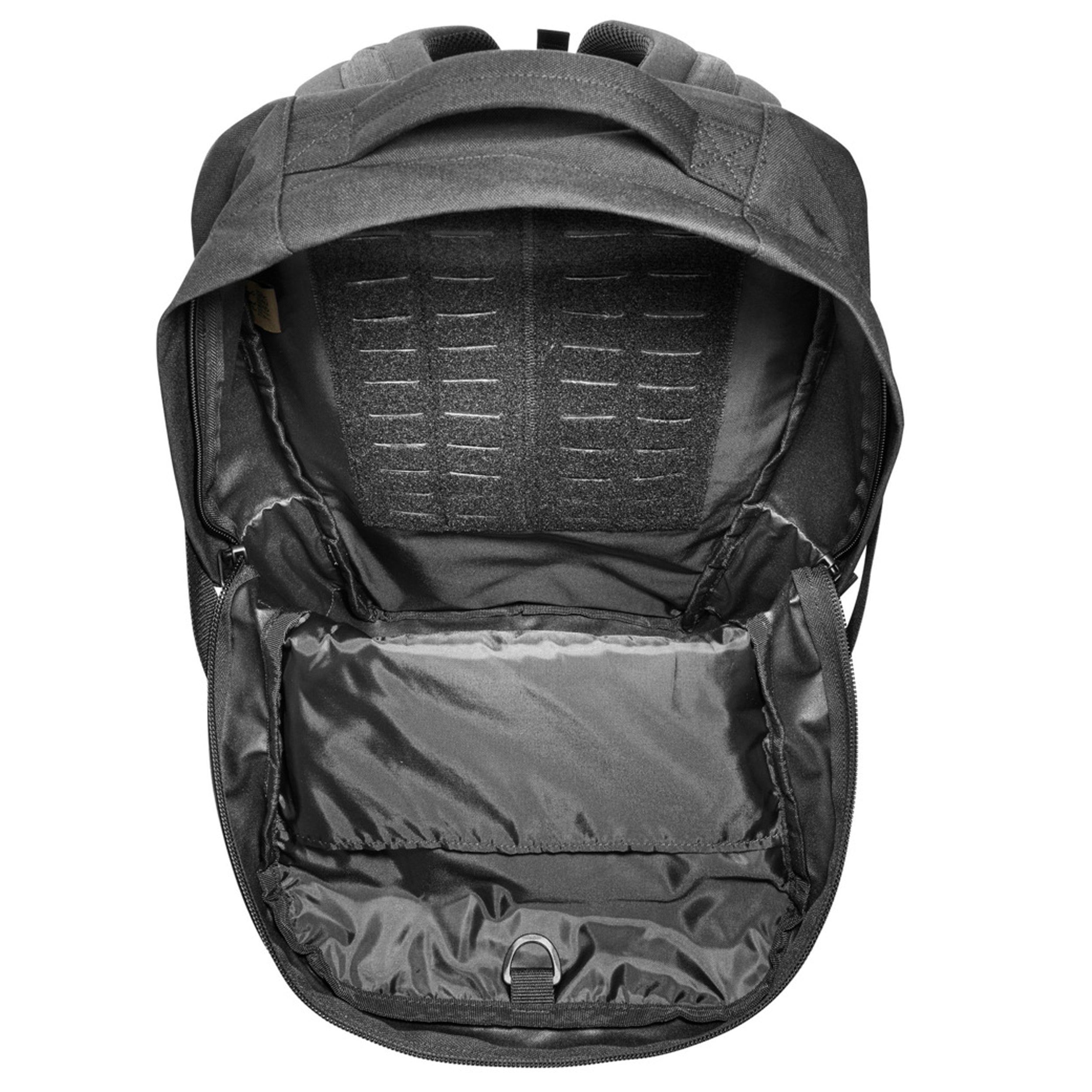 Das Hauptfach des Tagesrucksacks ist an der inneren Rückwand mit MOLLE-Klett belegt und ermöglicht so die Bestückung mit Kletttaschen. Die Größe ist zudem für die Aufnahme eines 15.4″-Laptops ausgelegt. Das flache Reißverschluss-Frontfach eignet sich zur Unterbringung von Dokumenten, Lasercut-MOLLE auf der Front und an den Seiten erlaubt die individuelle Erweiterung.
