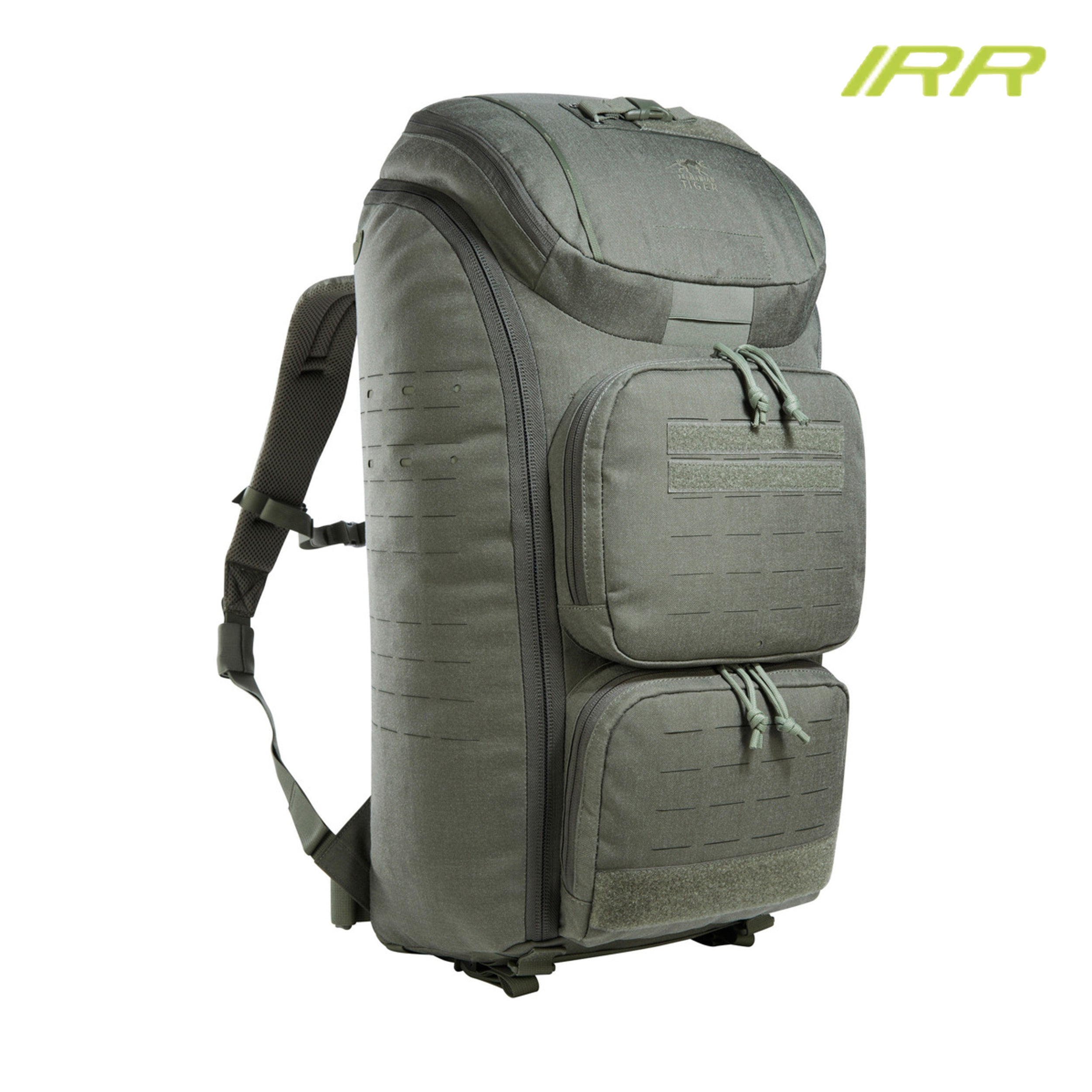 Der Tasmanian Tiger TT Modular Medic Pack 38 IRR ist ein modularer Erste-Hilfe-Rucksack mit zwei Fronttaschen und großem Deckelfach.