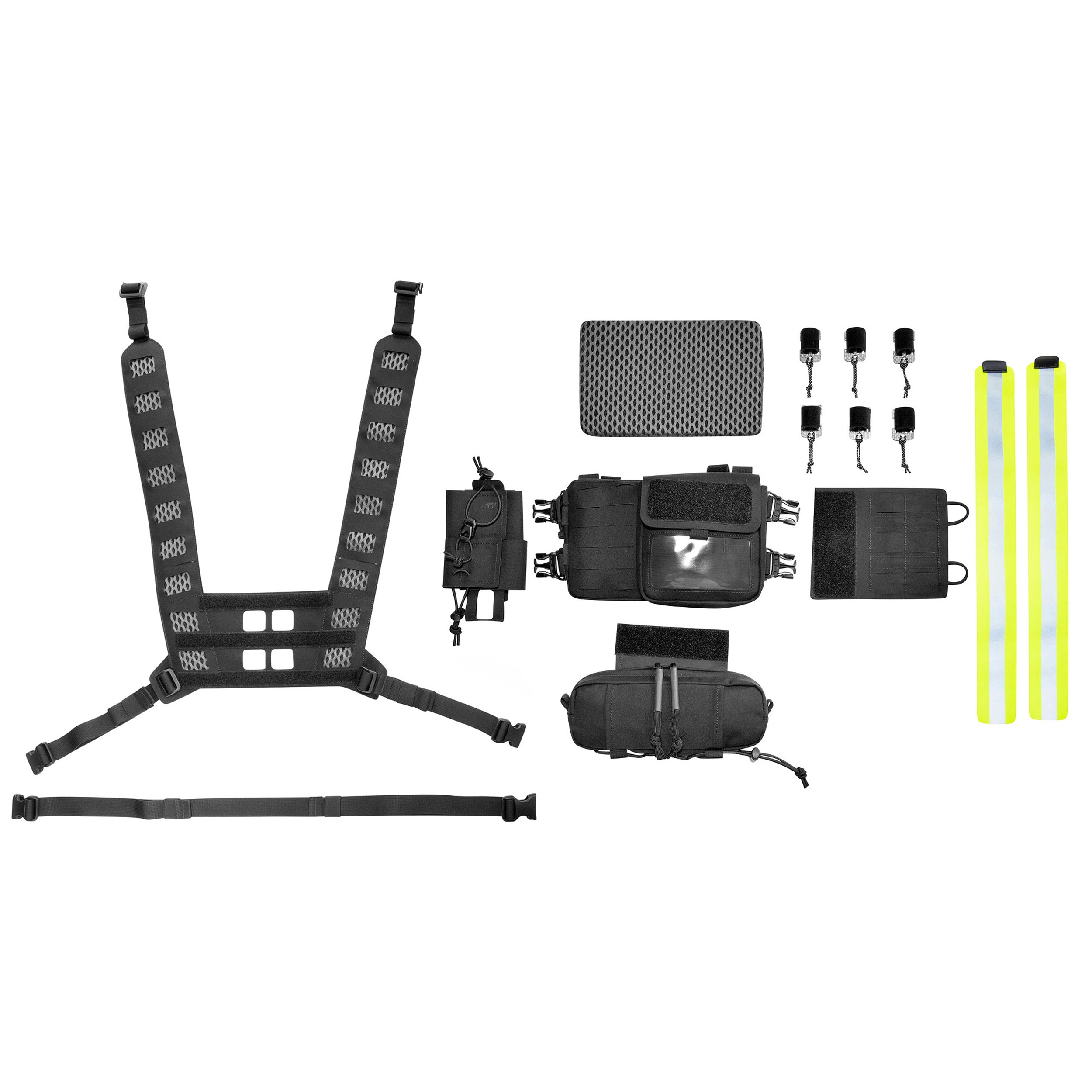 Das TT Security Pro Rig besitzt eine signalfarbige Kennzeichnung der Schultergurte (Streifen herausnehmbar) sowie ein Klarsichtfach für Ausweise. Es verfügt über diverse Taschen zur Organisation der Ausrüstung und kann auch individuell konfiguriert werden: Funkgerätetasche und untere Tasche sind abnehmbar, und der Seitenflügel mit Lasercut-MOLLE kann zur Befestigung weiterer Pouches genutzt werden. Die rückseitige Polsterung ist abnehmbar,wenn das Gurtzeug auf Plattenträgern montiert werden soll (Adapter sind nicht im Lieferumfang enthalten).