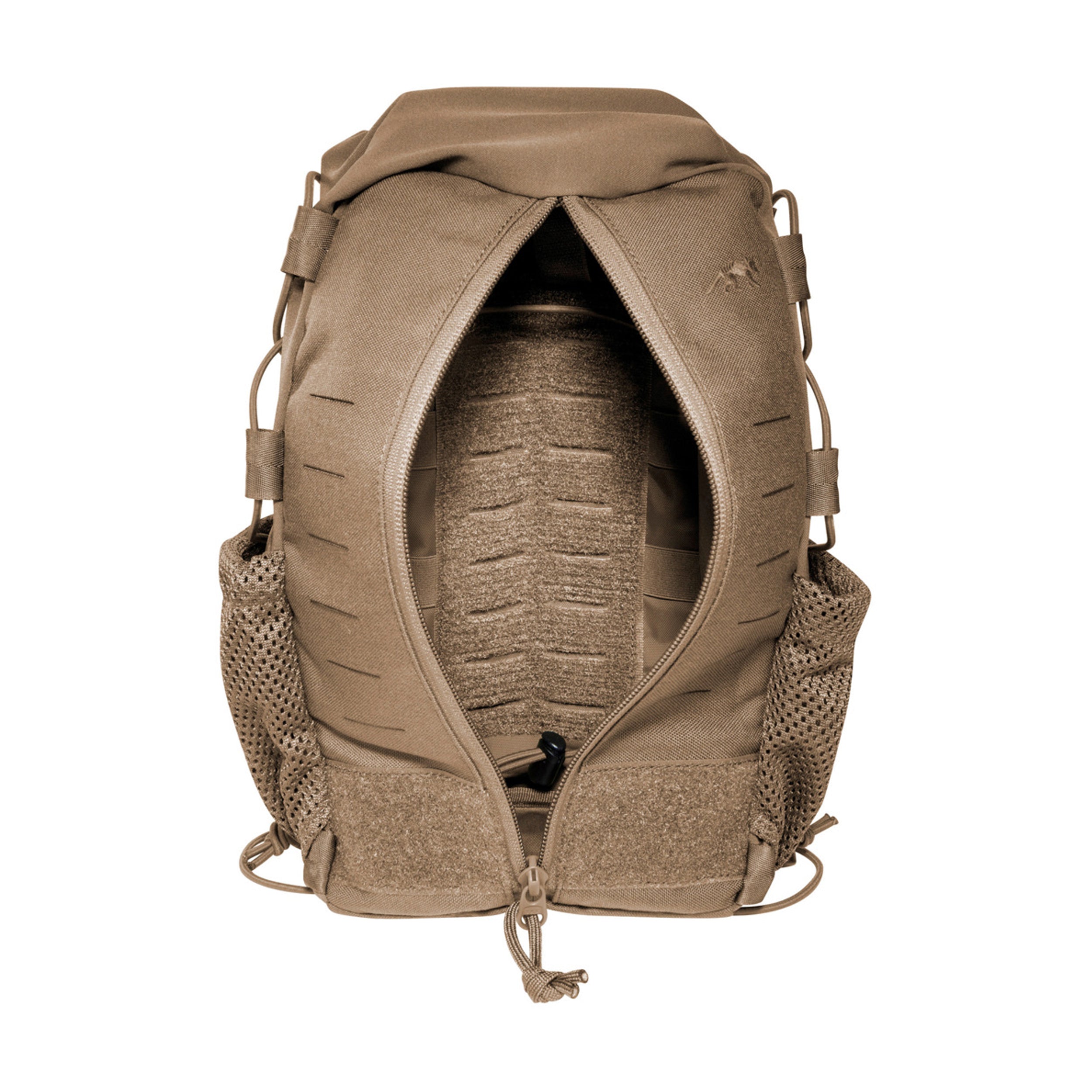 Die Tasmanian Tiger Tac Pouch 11 MKII ist eine leichte, komprimierbare Mehrzwecktasche mit elastischen Seitenteilen, zur Befestigung an Plattenträgern und Rucksäcken. Die TT Tac Pouch 11 mit 7 Liter Volumen bietet durch den Mittelreißverschluss einen schnellen Zugriff. Die funktionale Innenaufteilung des Hauptfachs mit MOLLE-Klett und Bungee-Cord kann zum Beispiel für medizinische Ausrüstung genutzt werden. Die Tasche verfügt zudem über seitliche Einstecktaschen aus Netzgewebe, z.B. für Magazine, und MOLLE in Lasercut-Ausführung sowie eine Flauschklettfläche auf der Front. Das gesamte System ist mit Bungee-Cord flach komprimierbar. Die Tasche ist zudem mit einer Trinksystemvorbereitung und dem entsprechenden Ausgang ausgestattet.
